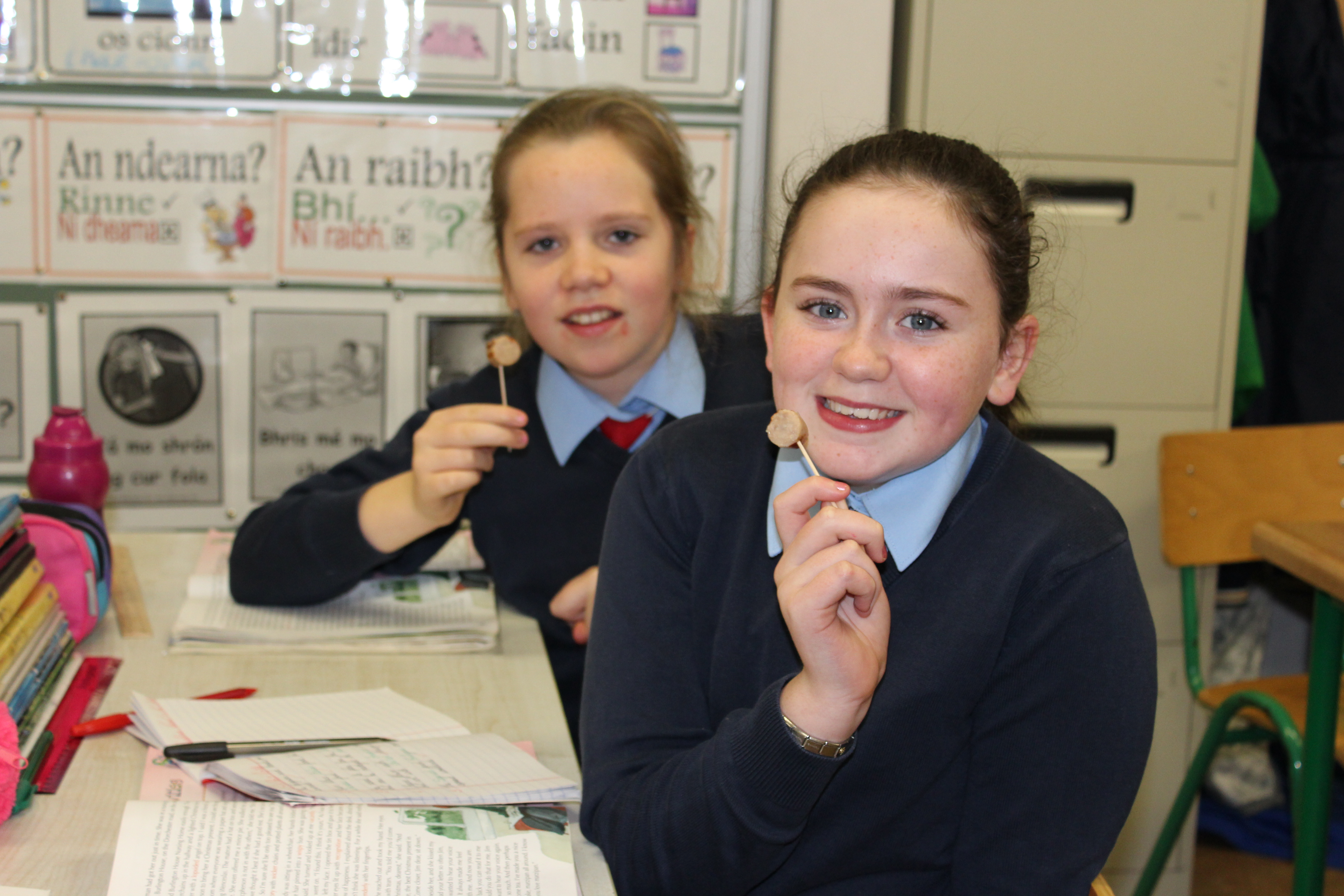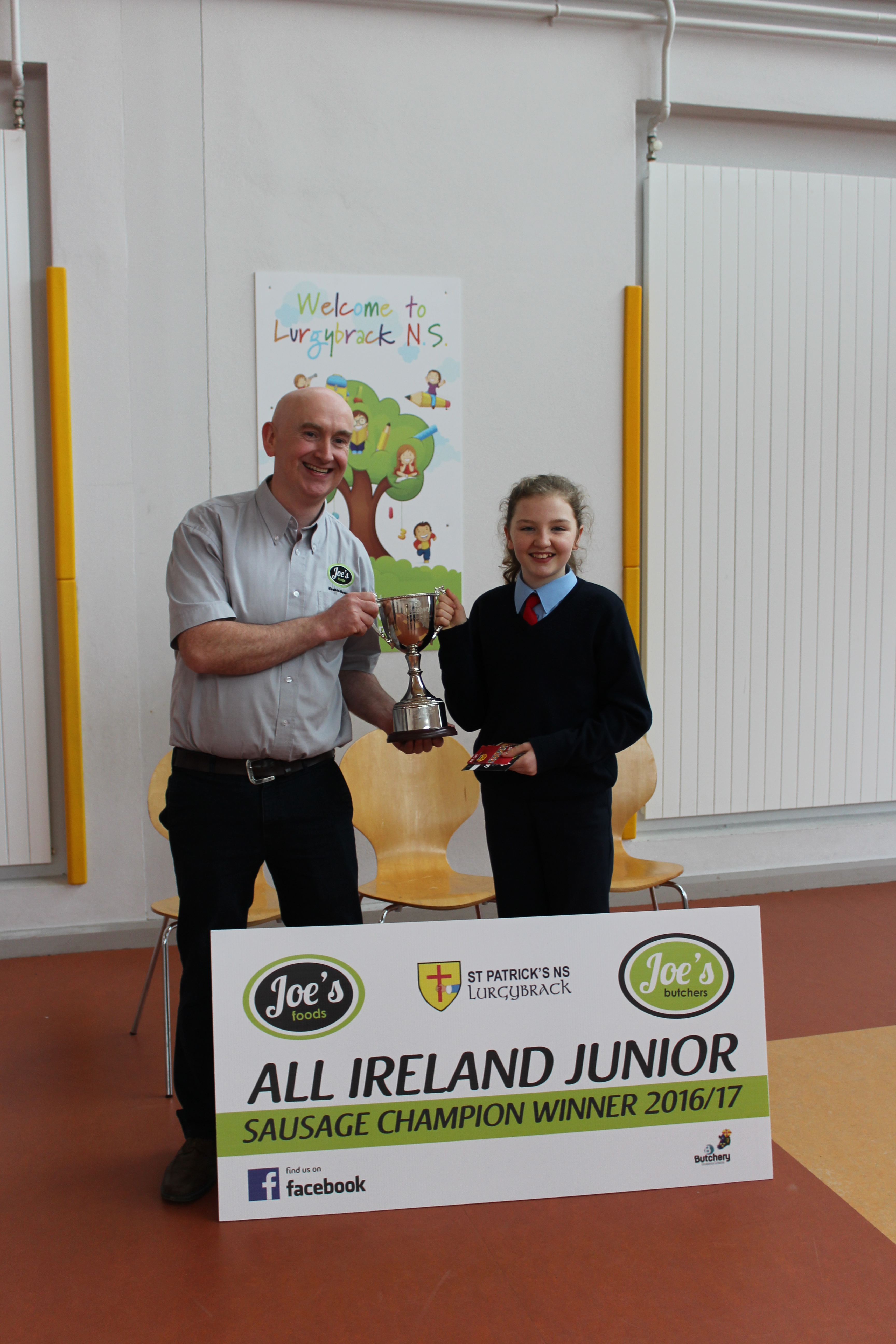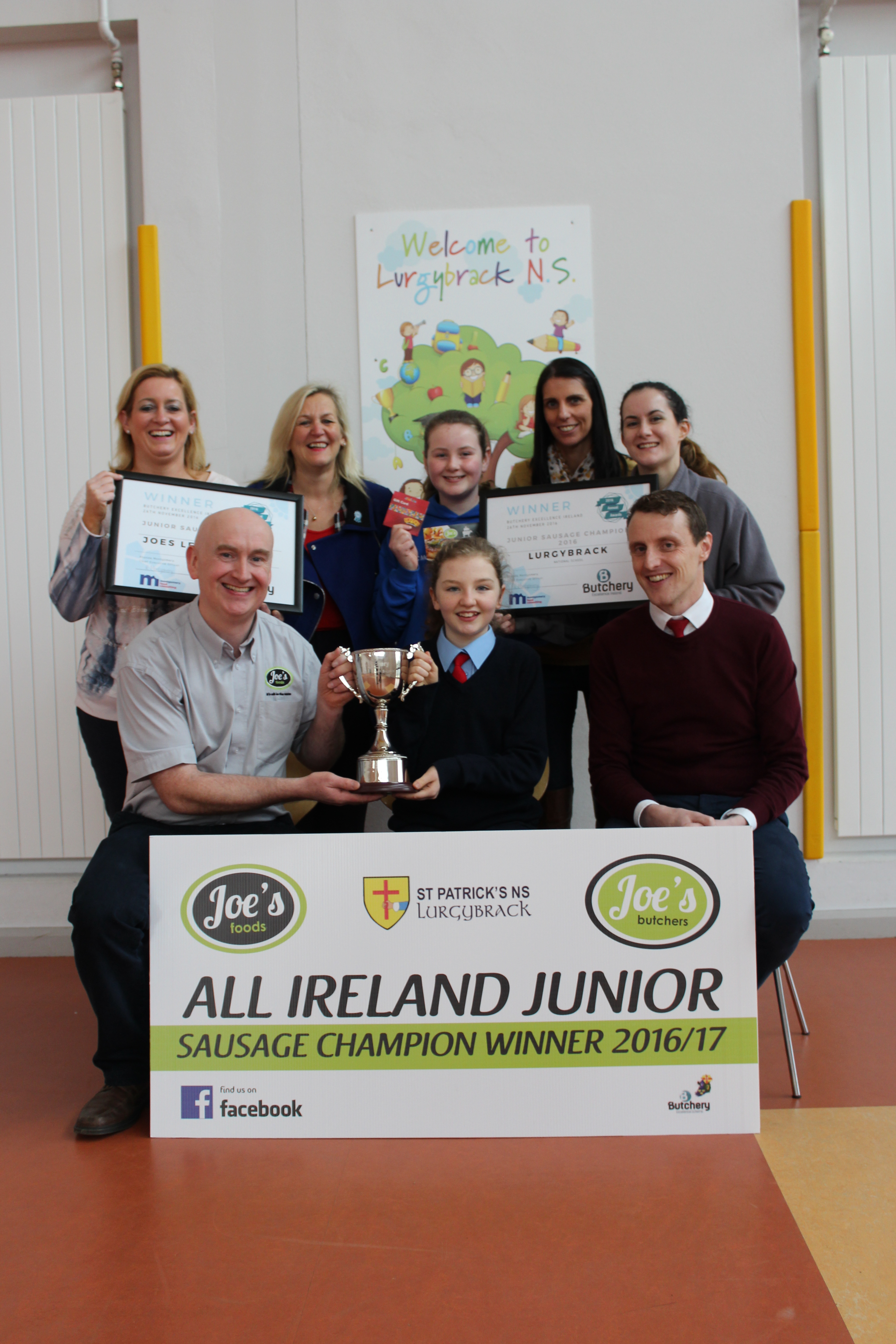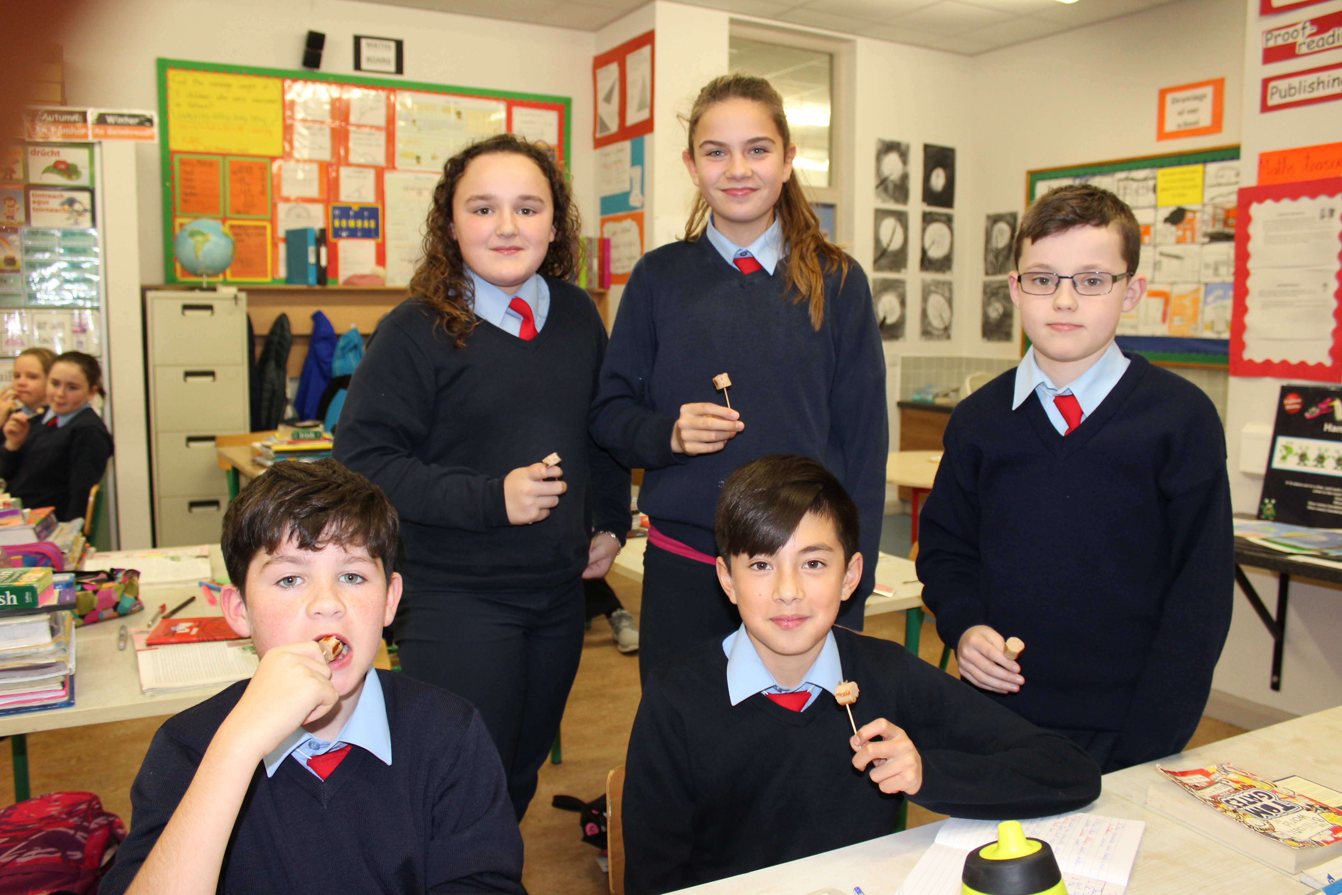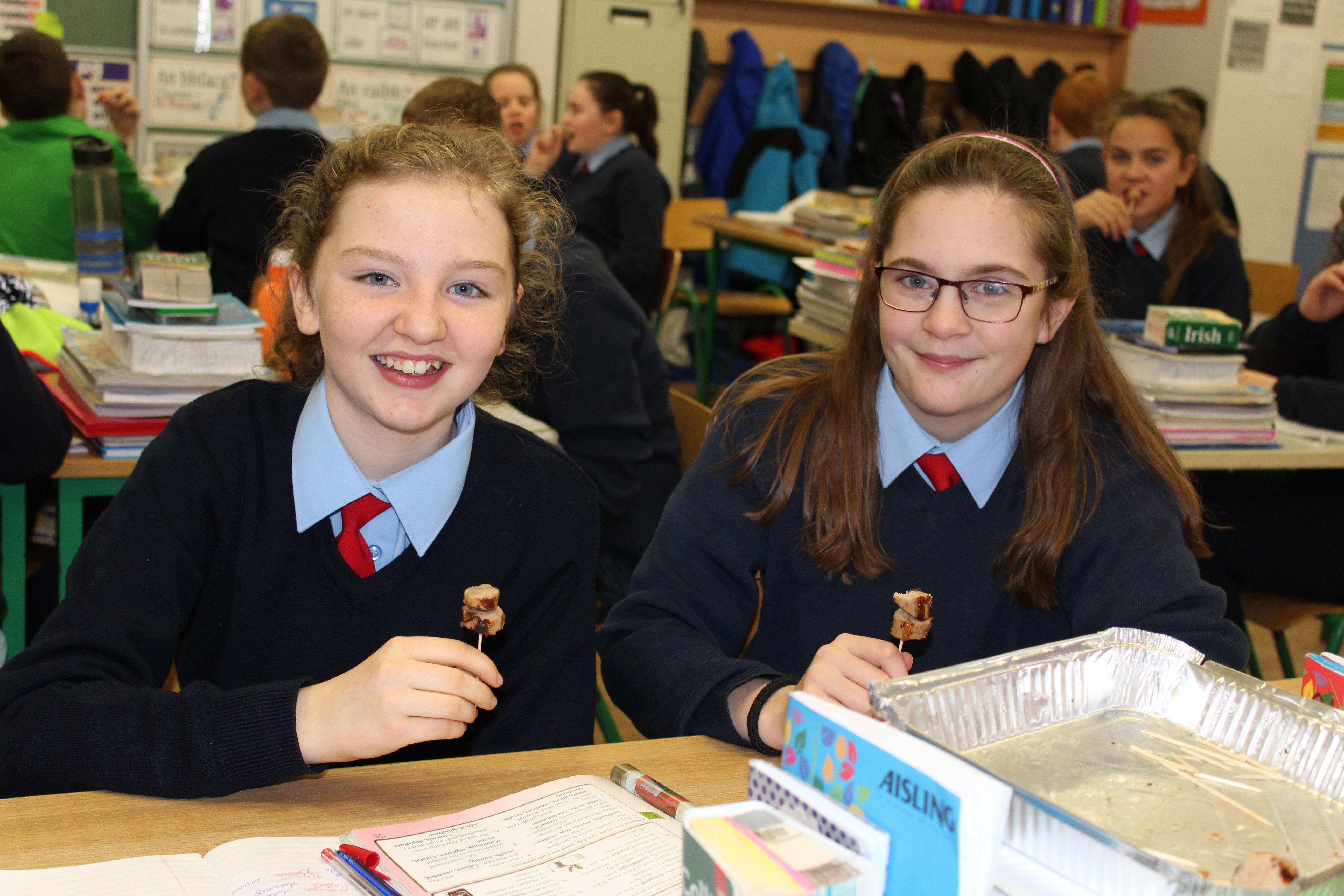 At the end of November we were told the great news that Ellen’s Breakfast Sausage had won the Junior All Ireland Sausage Competition. It had pieces of bacon ,egg and black pudding in it. Joe and his staff came into the school to present Ellen with an award and vouchers. Joe brought in lots of cooked breakfast fry sausage for all the class and staff to try out. Thank you very much to Joe from Joe’s butchers. You can now buy Ellen’s Breakfast fry sausage in Joe’s butchers.