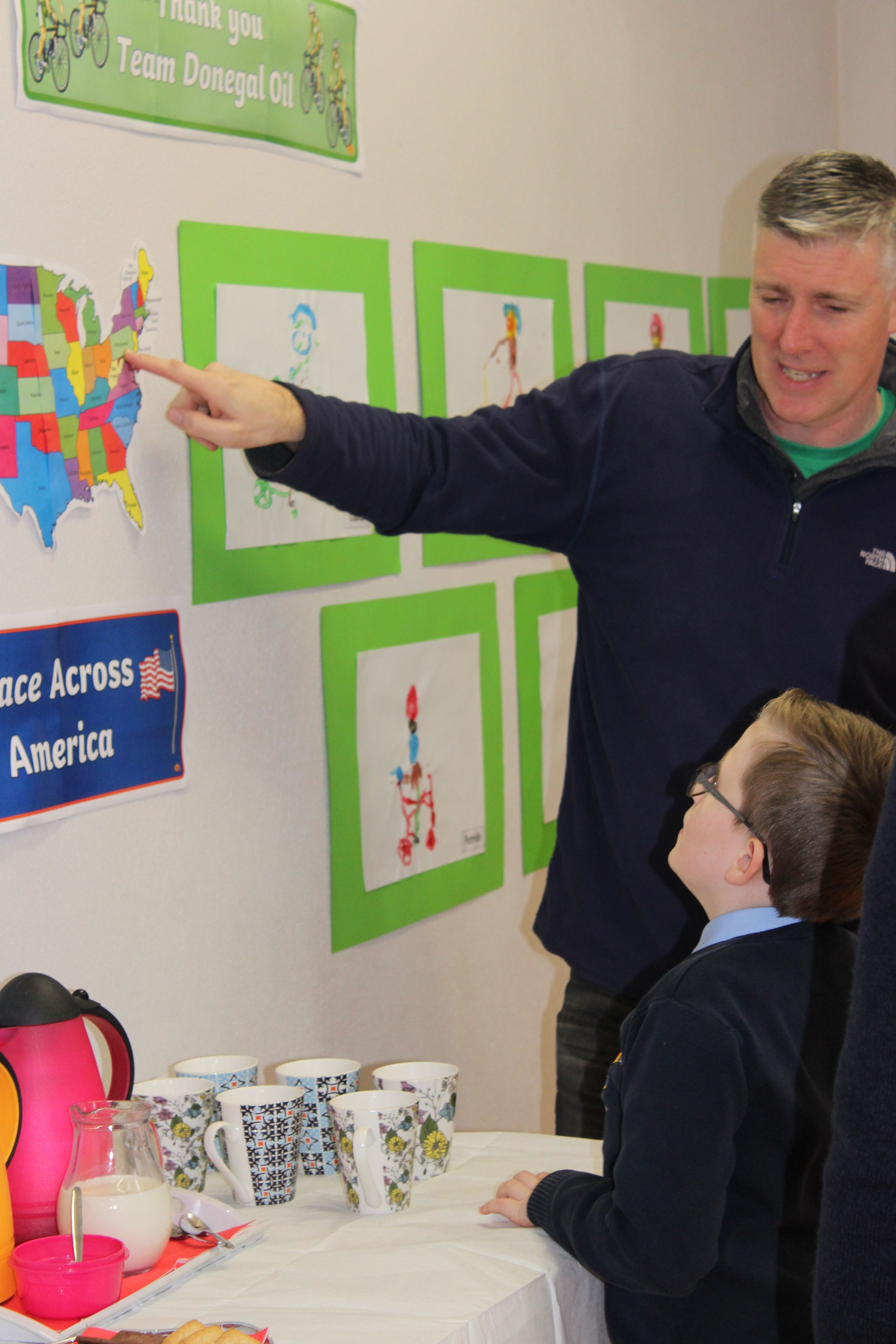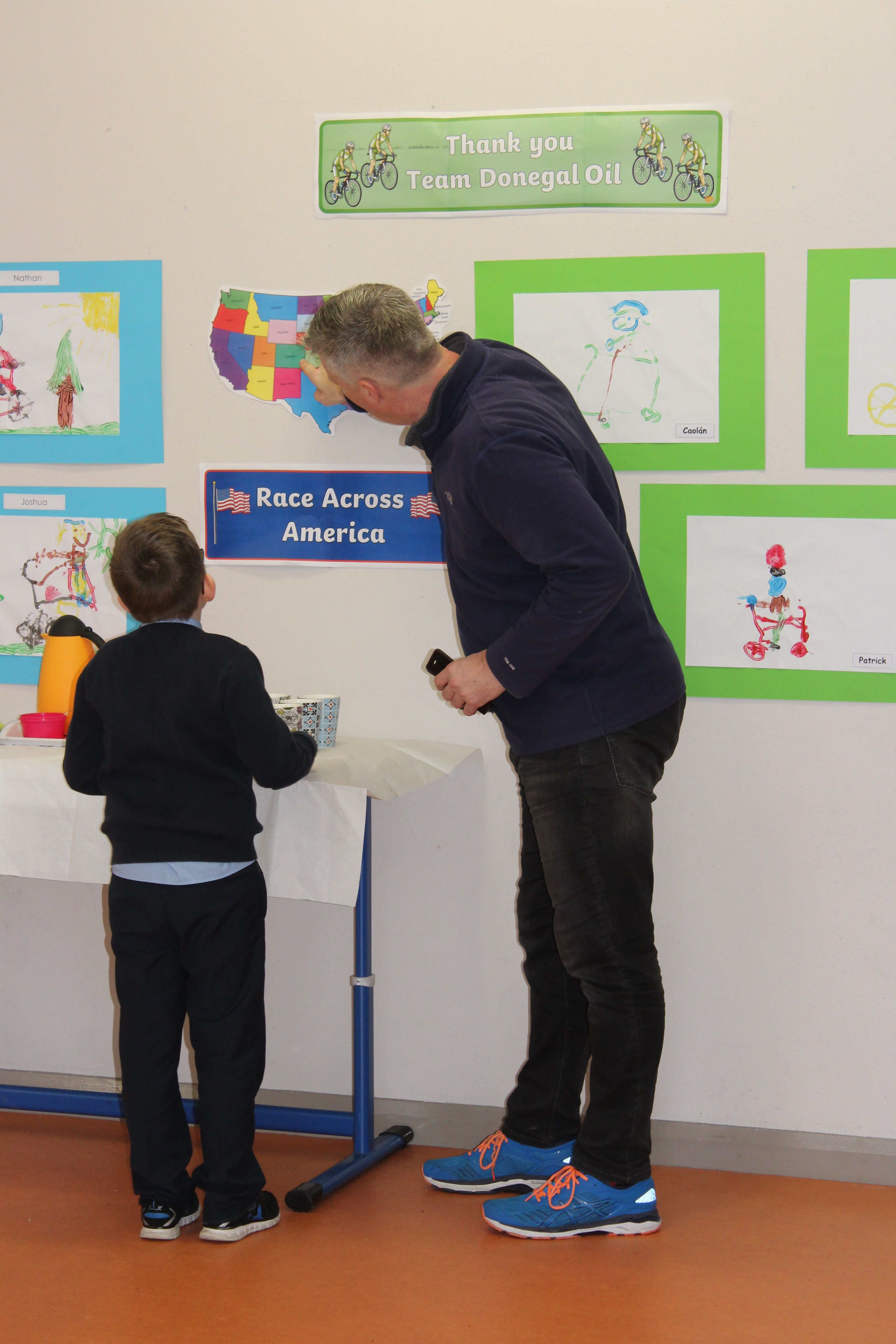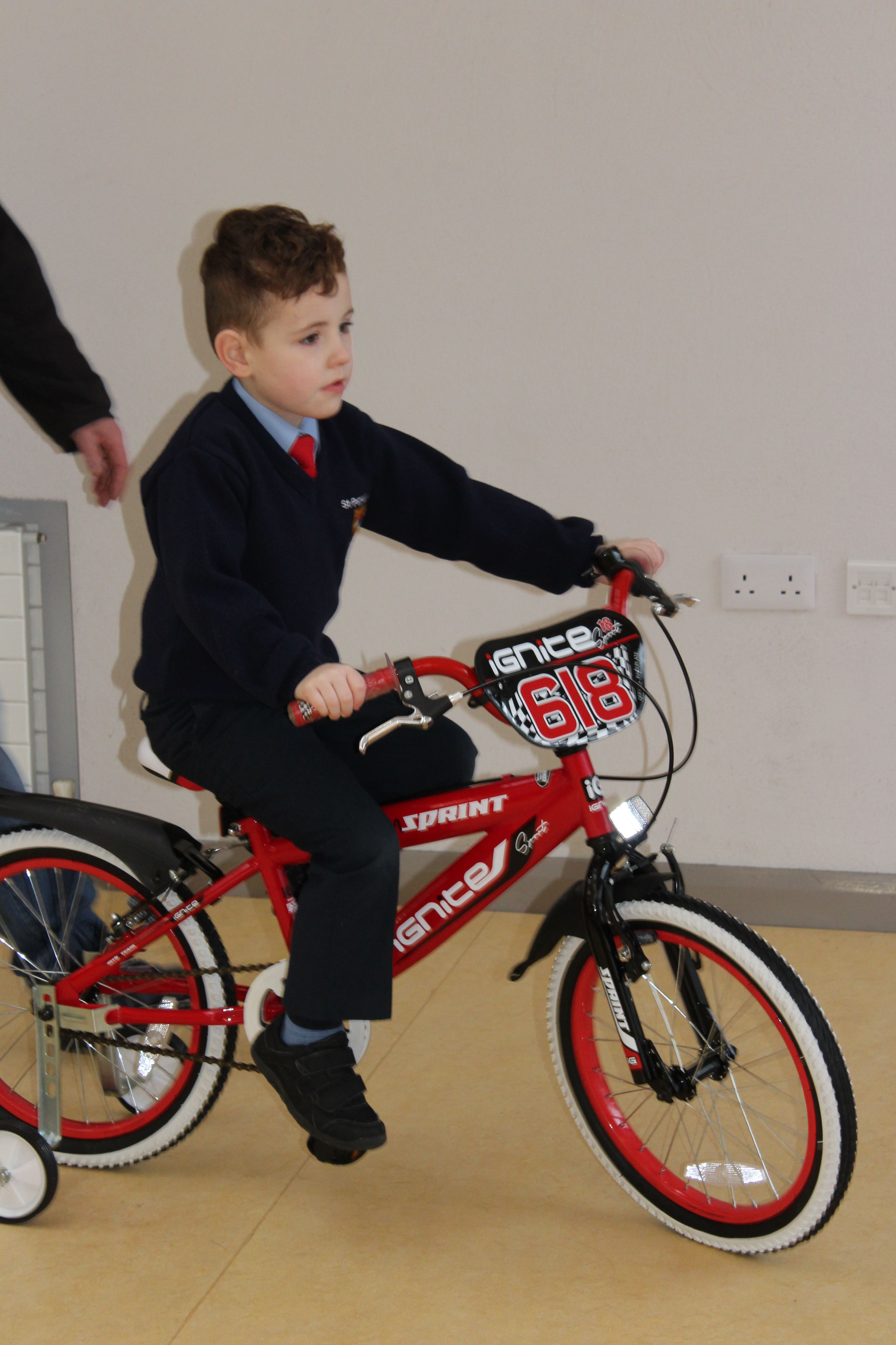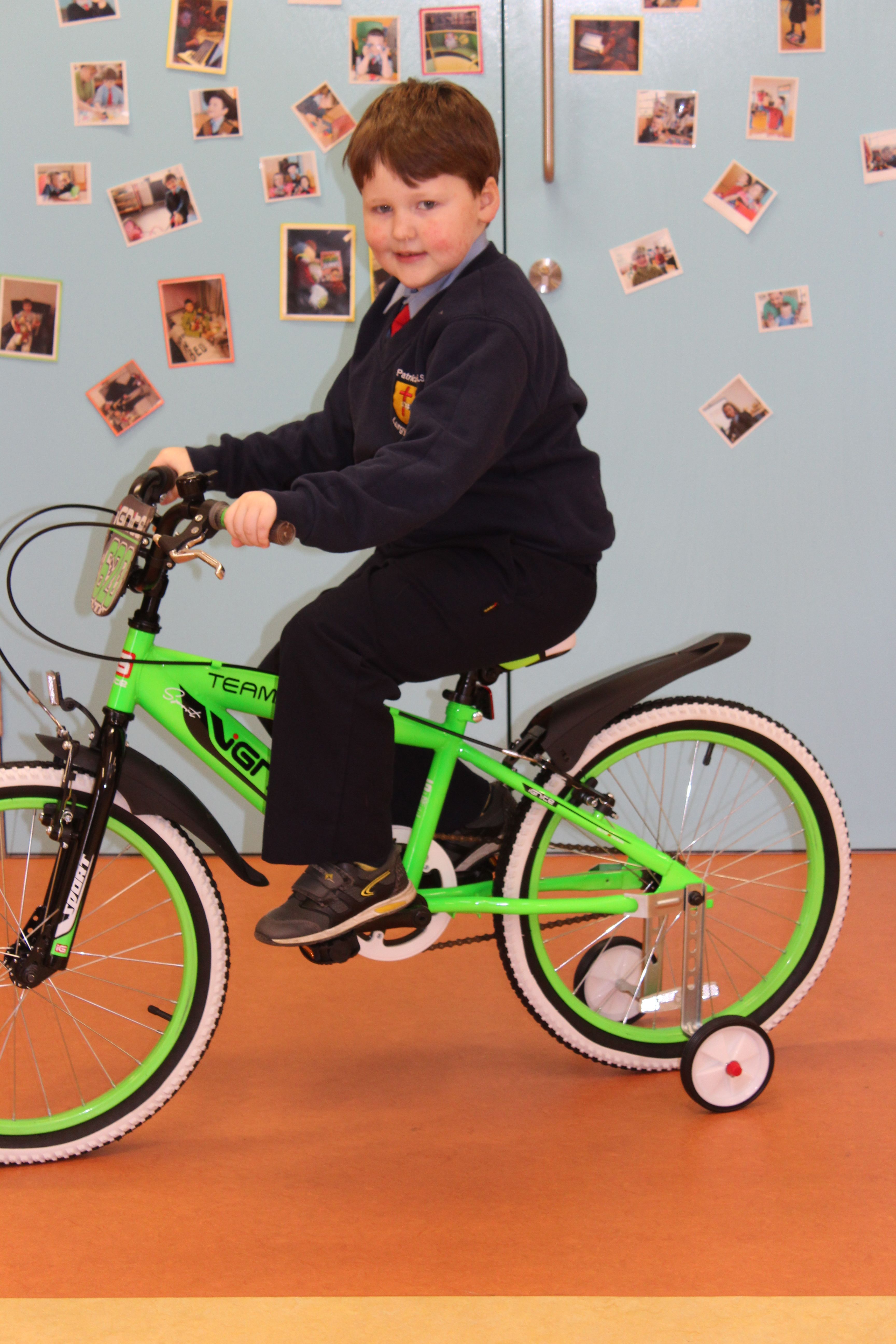 Arthur McMahon, Gerard Callaghan, Gavin Harris and Boyd Robinson, who all took part in the Race Across America Cycle last summer to raise money for physical equipment for children with Autism, came to present us with three fantastic bikes and a foot twister, provided by LK Bikes.