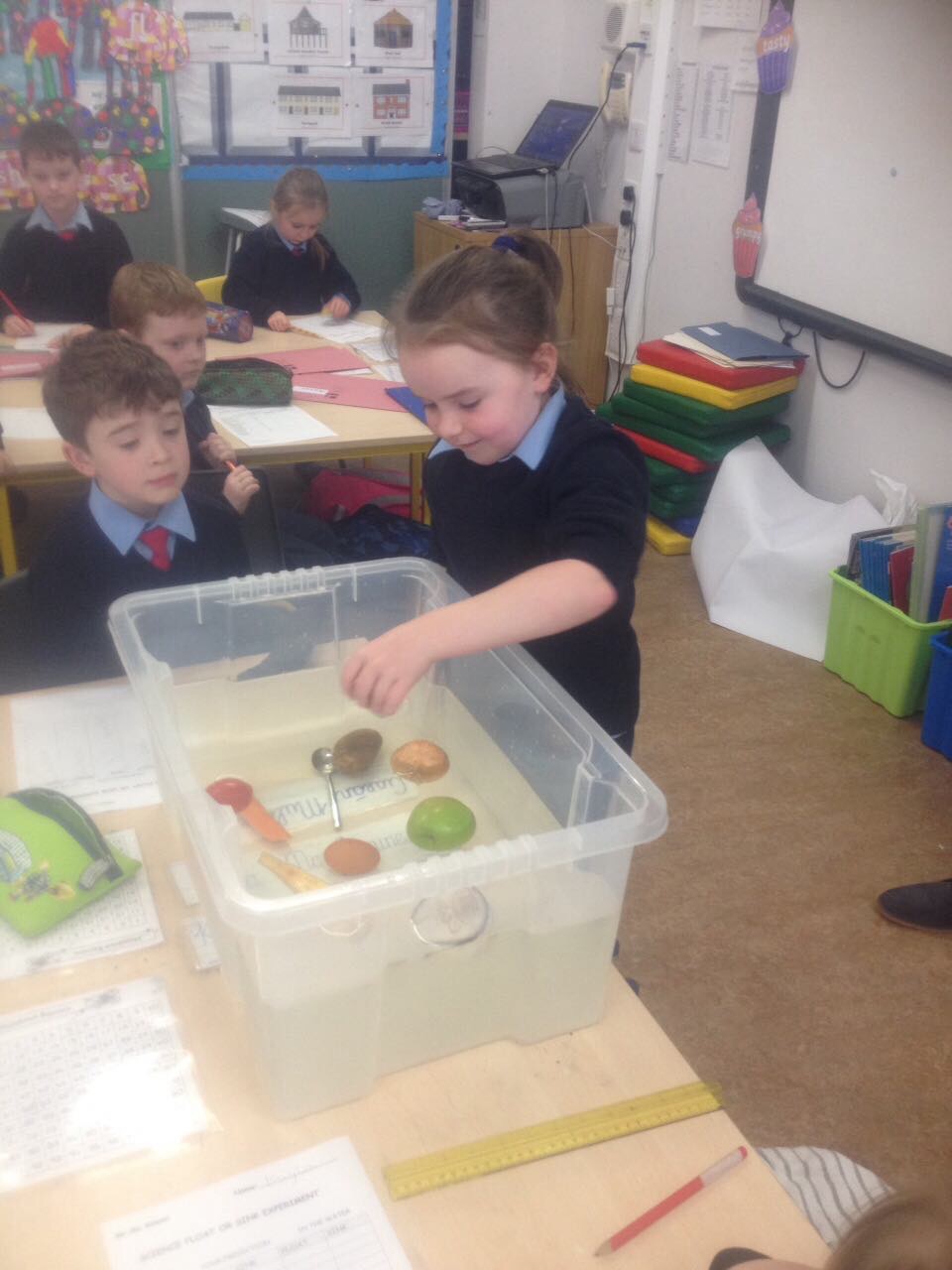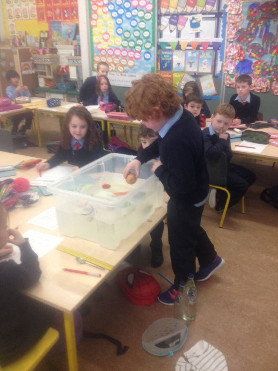 Will it roll? Junior Infants test out various objects.