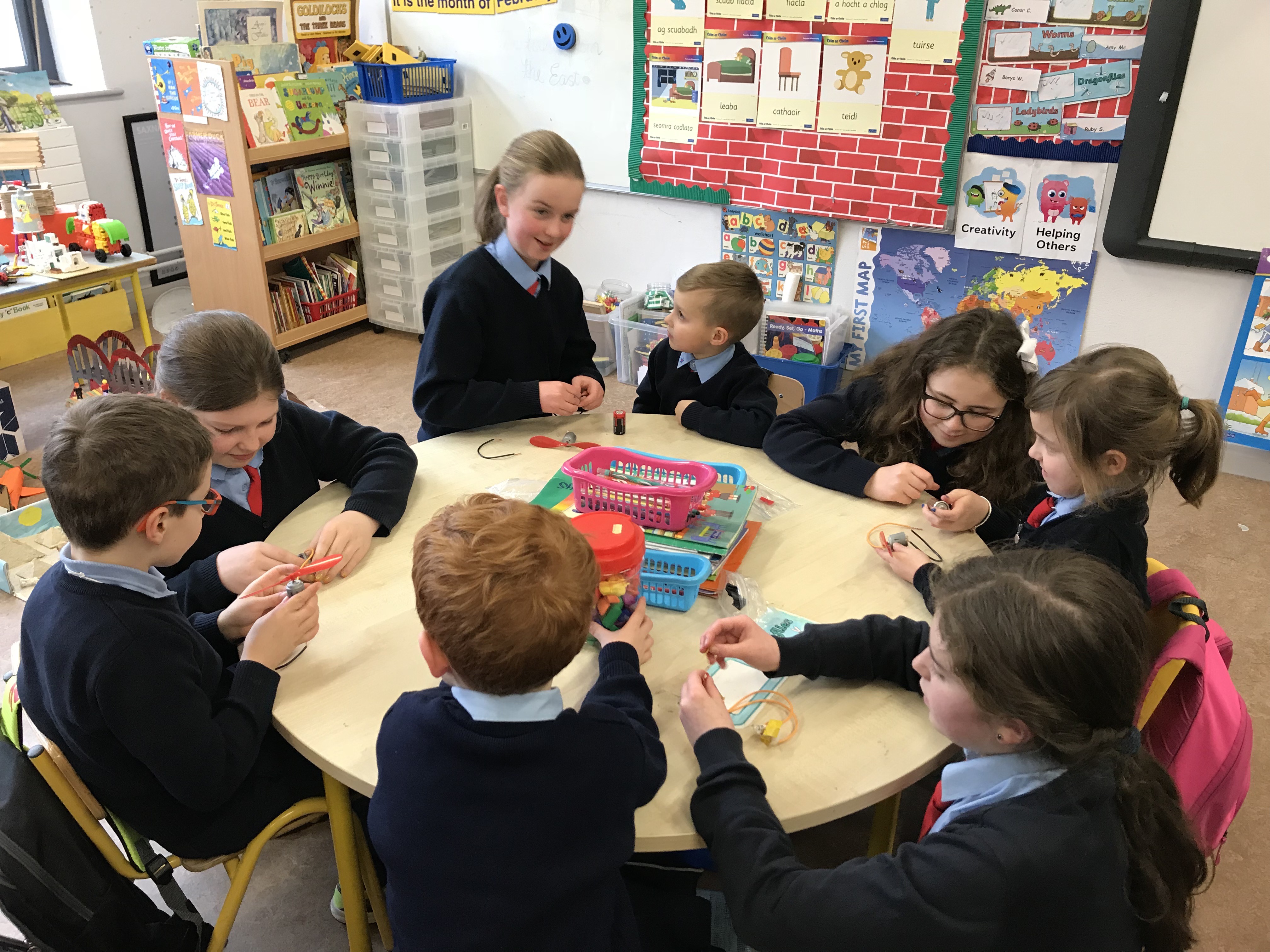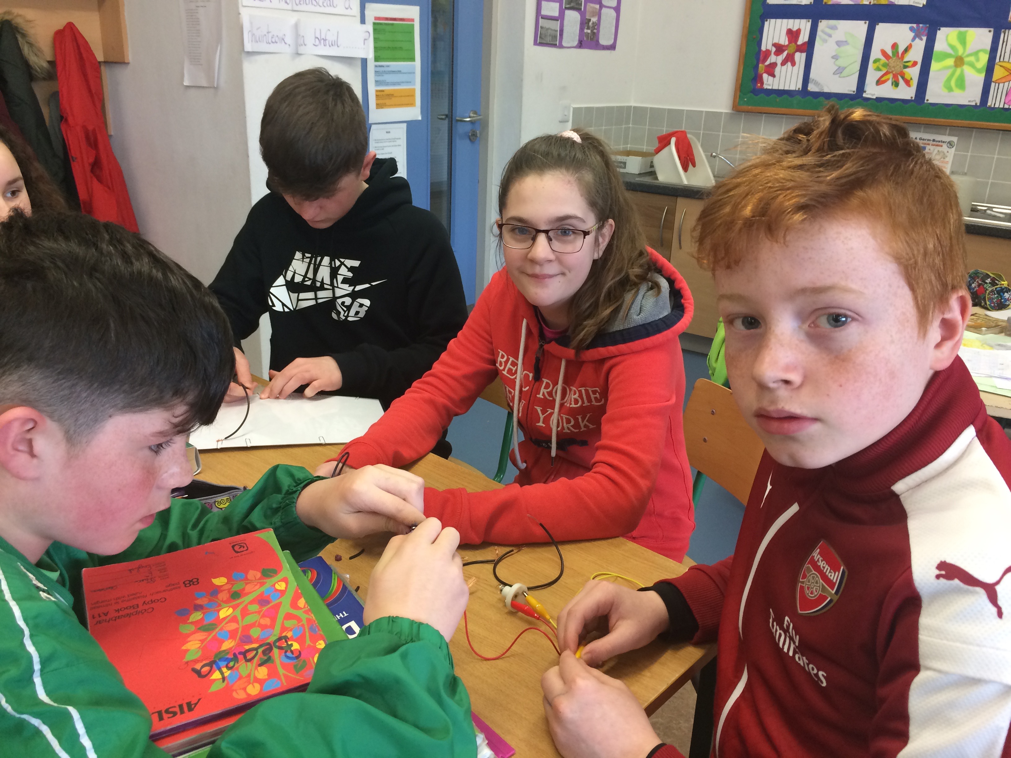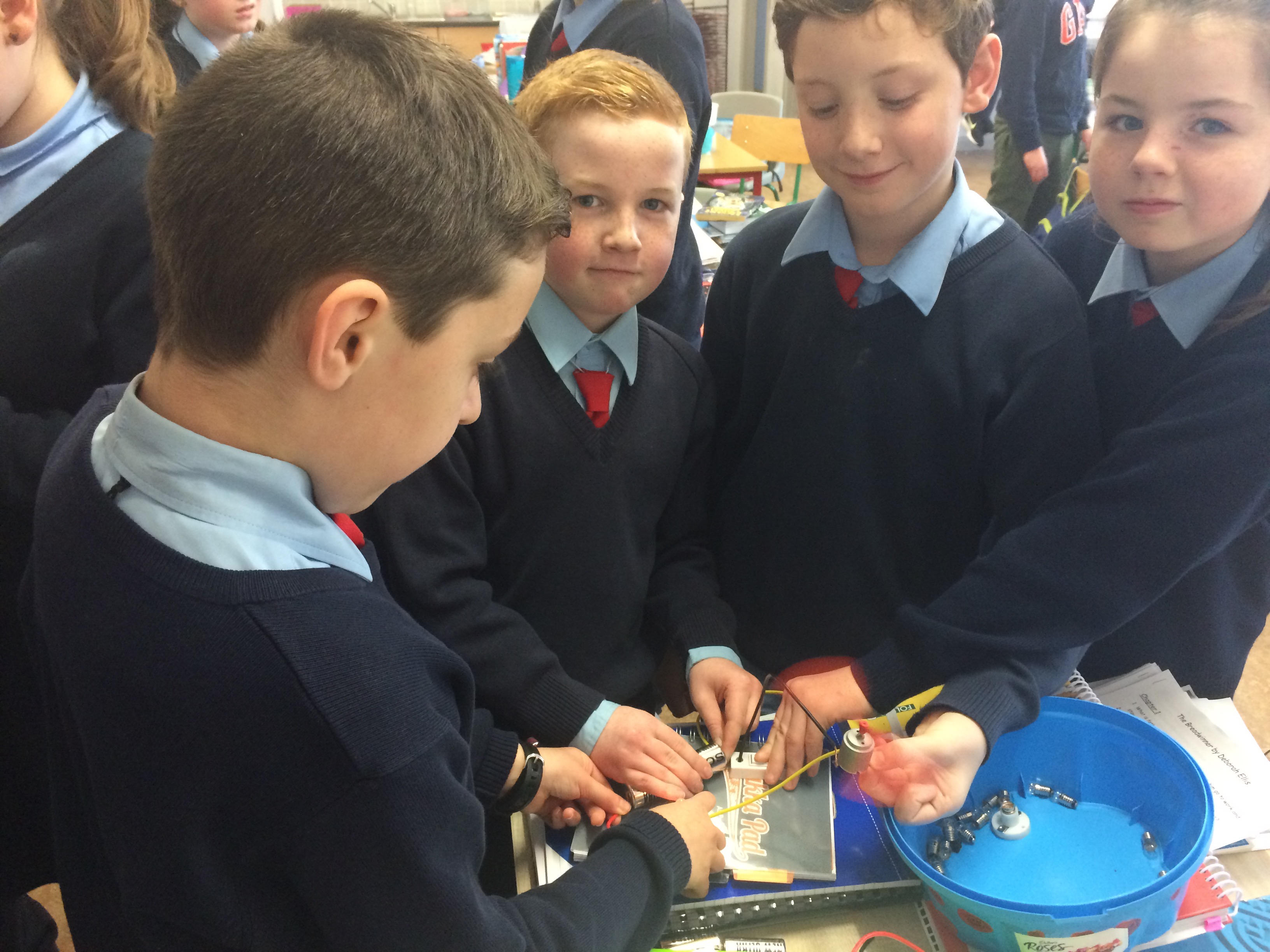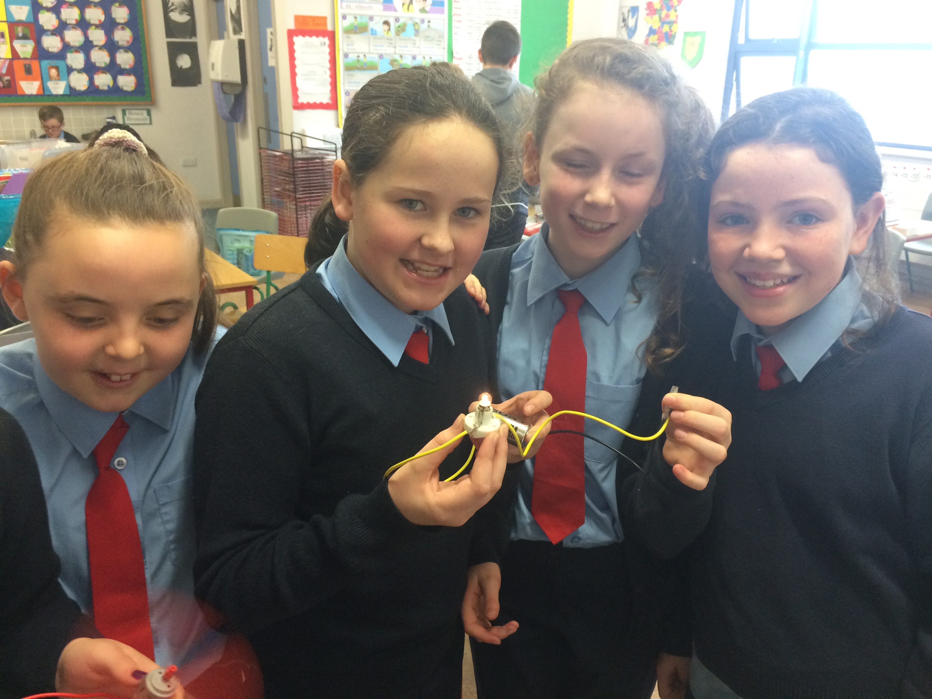 Senior classes made electric quizzes for 1st class. If they got the answer right, the fan rotated!