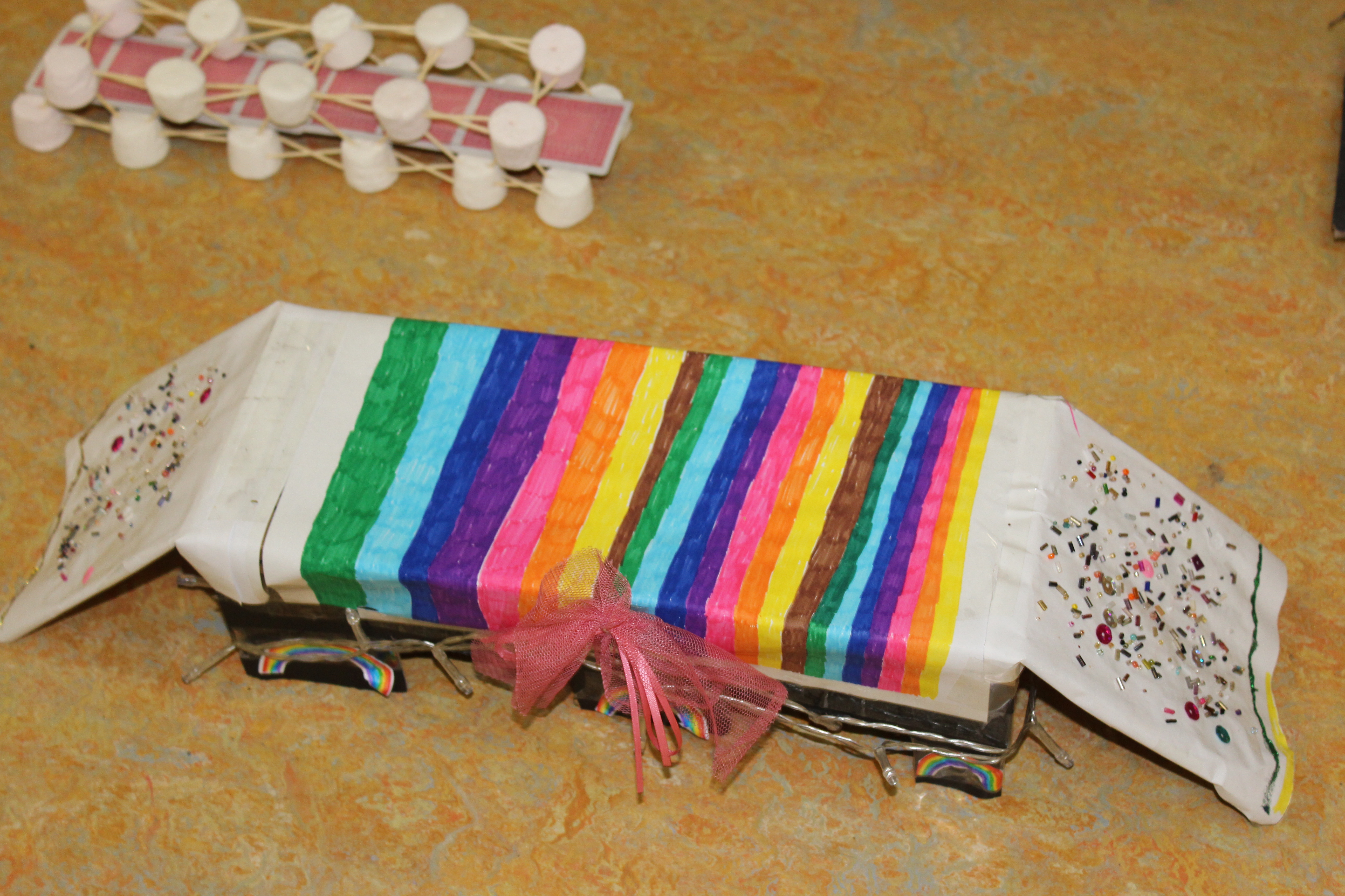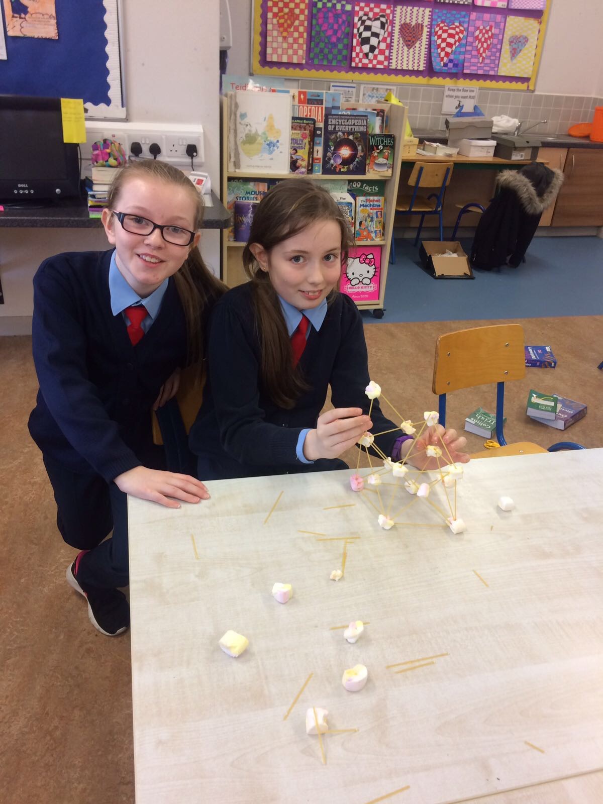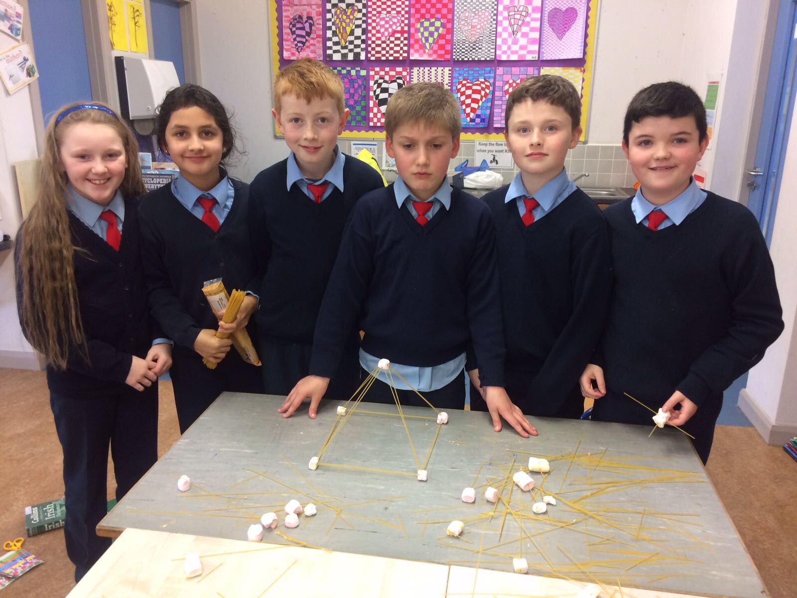 4th Class made structures using marshmallows and spaghetti.