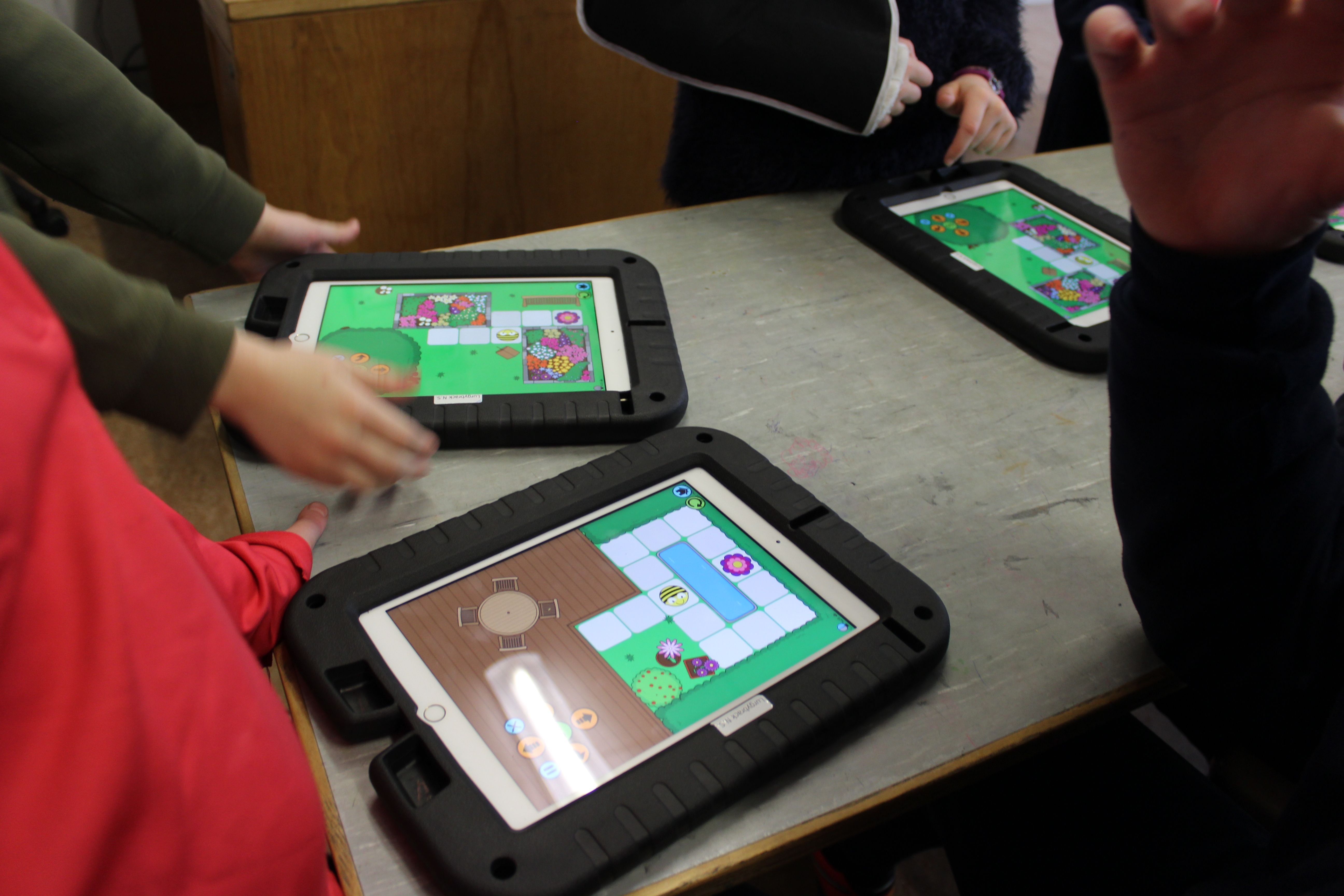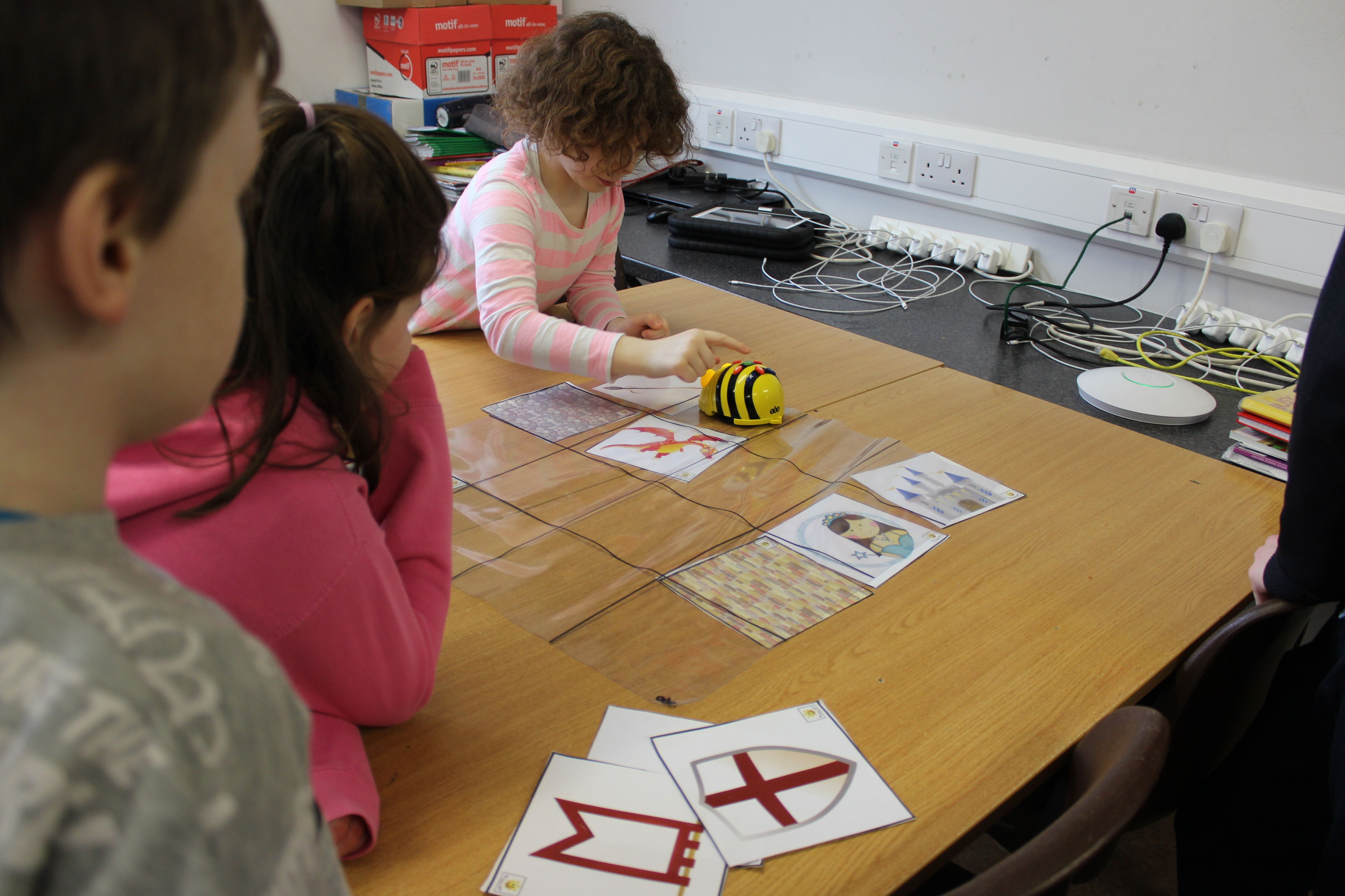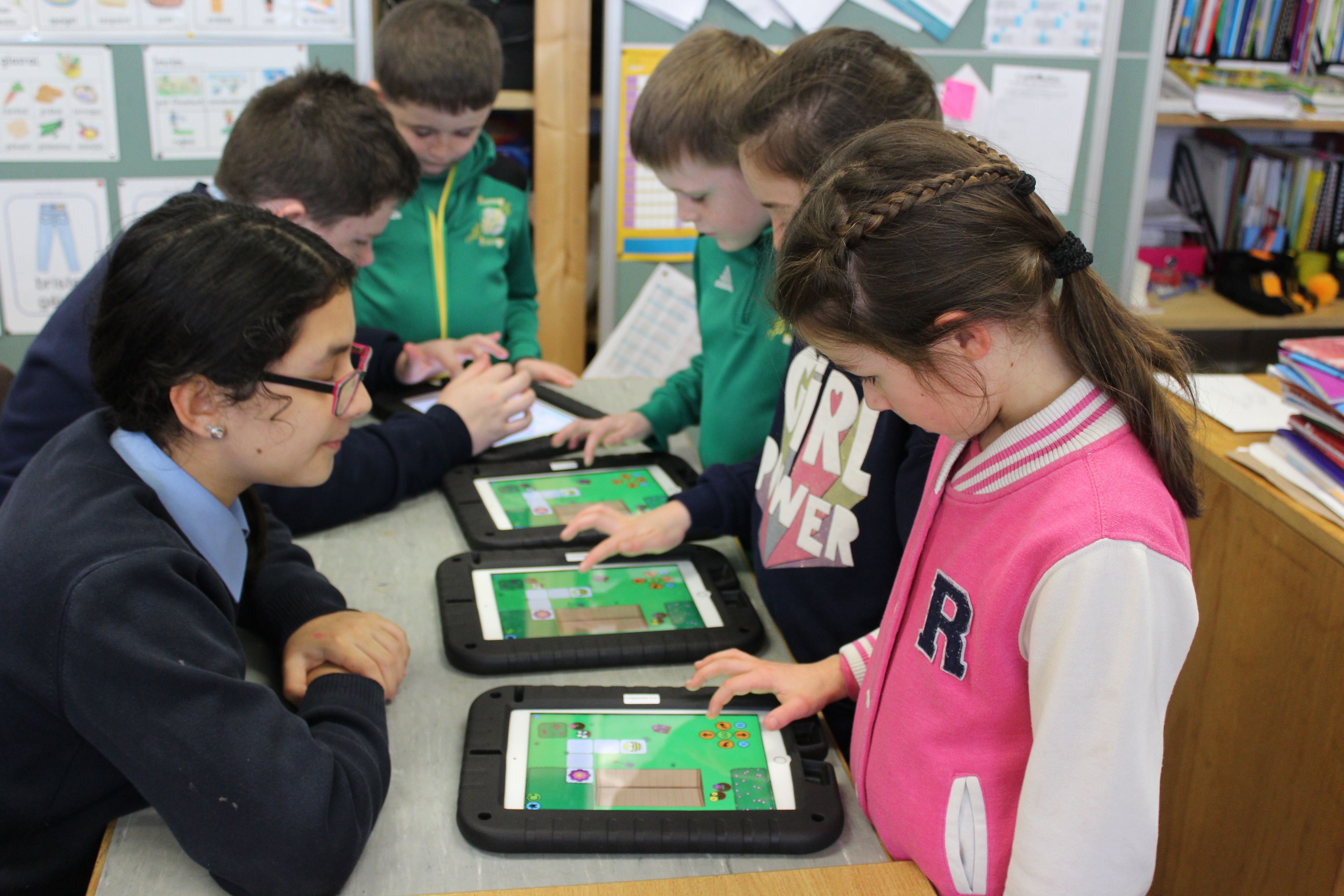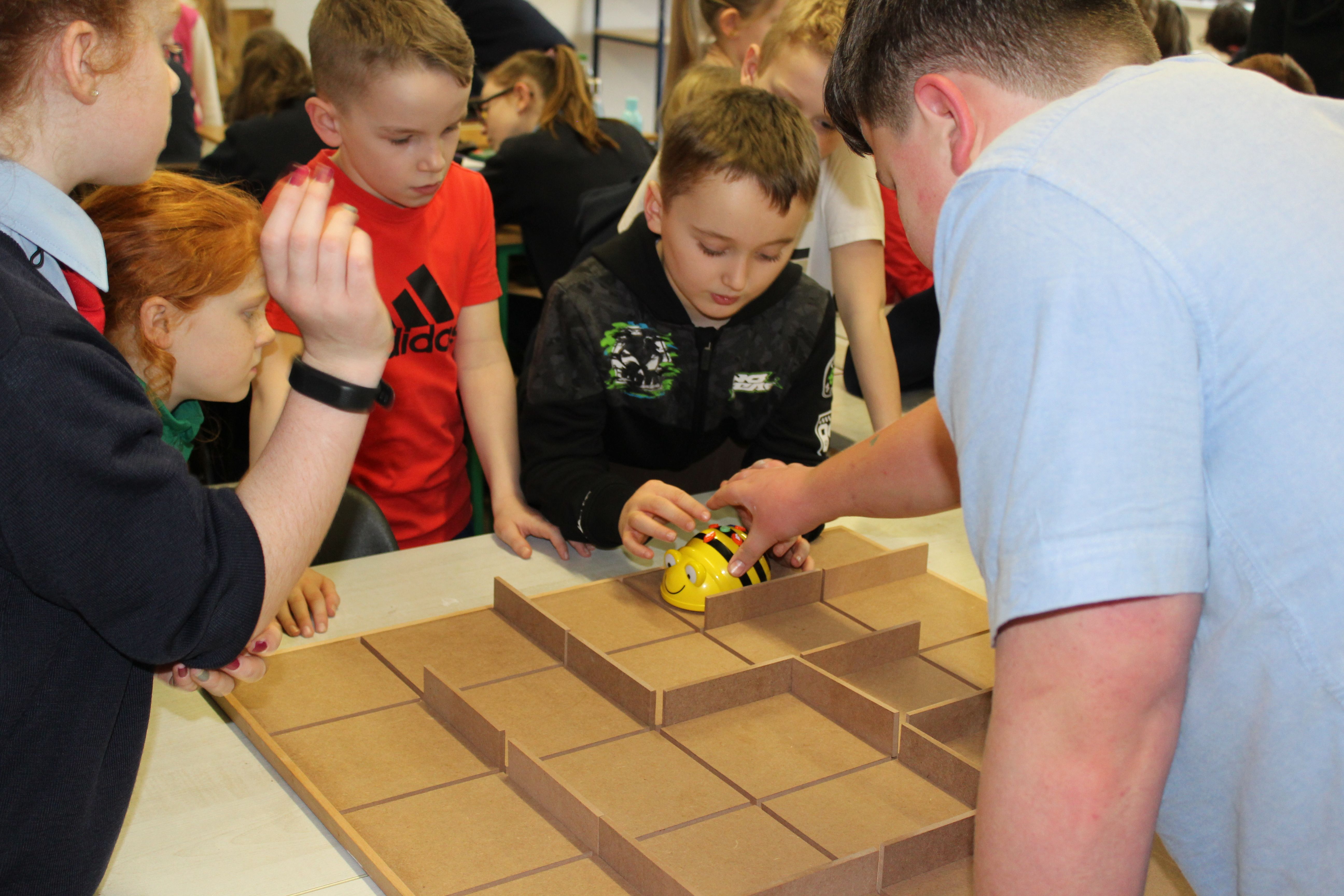 3rd class, with help from 6th, were developing problem solving skills through concepts of computational thinking and coding using Bee Bots. Bee Bots are exciting programmable robots designed for use by children. They are a great resource to introduce simple programming and coding to children. These easy to operate and friendly robots are a perfect tool for teaching directionality, sequencing, estimation and problem-solving. The children had to use specific vocabulary associated with coding and understand that they can control the device by creating simple algorithms.