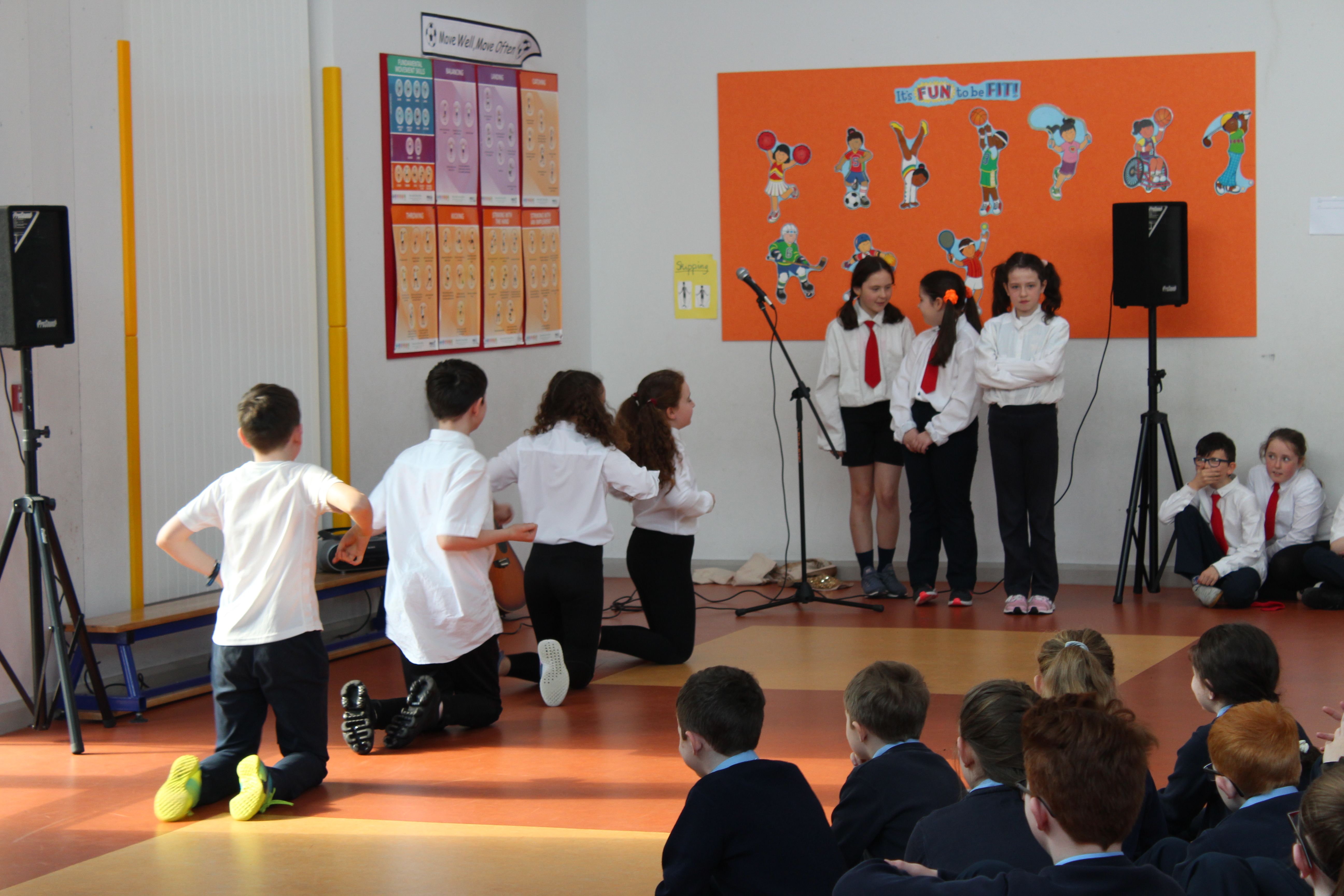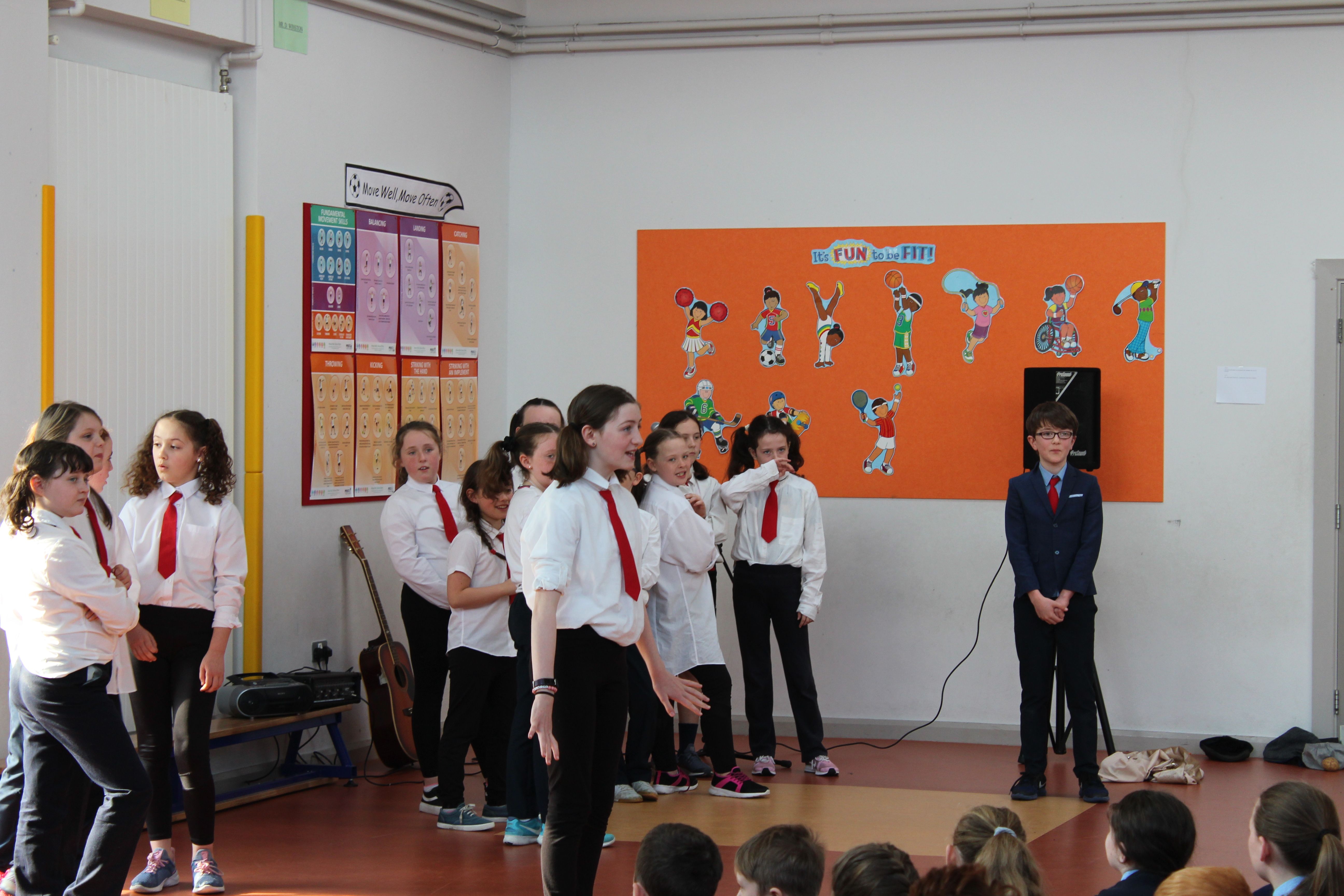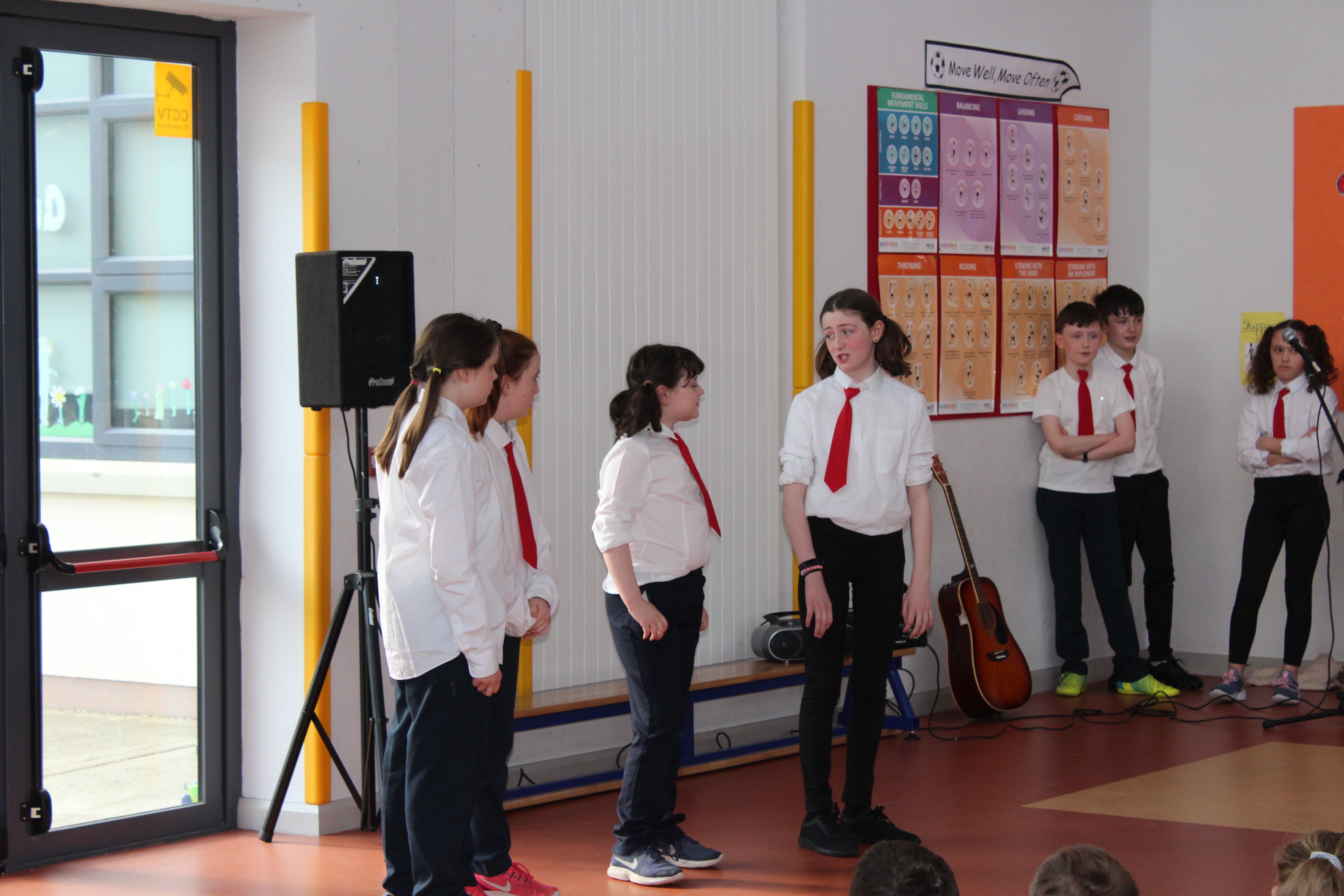 On Friday 5th April, the two fourth classes went to Colaiste Ailligh for Scór 2019.We went to represent our school St. Patrick’s N.S. All of us had a great time. Six categories were done; solo singing, group ballad singing, instrumental group, dramaíocht, solo dancing and storytelling. I was in the grúpa dramaíocht. Kacey Hegarty did solo dancing and Tara Gildea did the poem/storytelling. It was a big competition. All the schools were really good. The schools were; Scoil Mhuire Gán Smál, Scoil Cholmcille, Gaelscoil, Glassan N.S and Stramore N.S. The overall winners of the competition were Scoil Mhuire Gán Smál. We came second in the dramaíocht and got a medal. It was a wonderful opportunity to be included in such an amazing competition. By Erin Hughes, 4th class