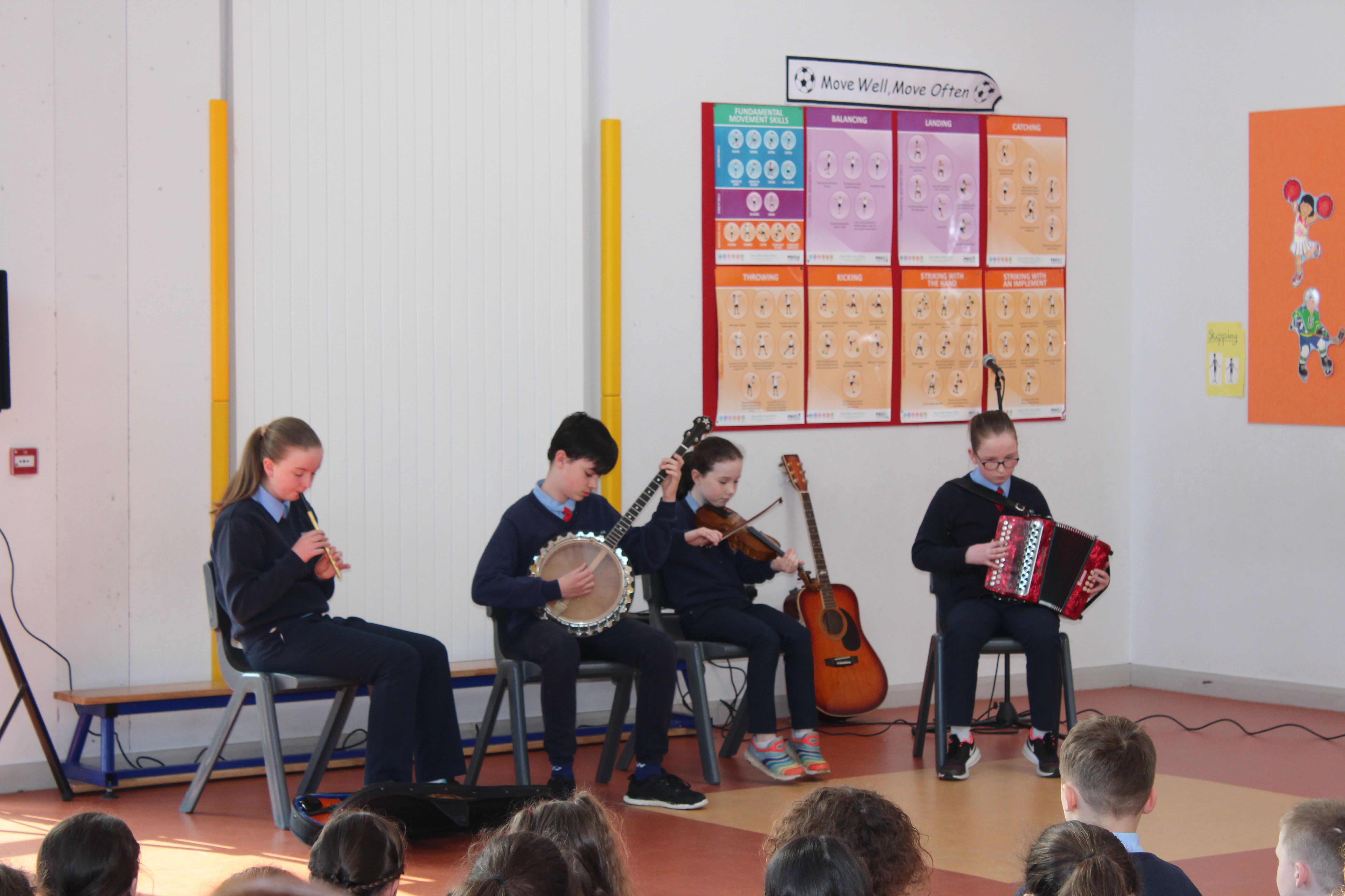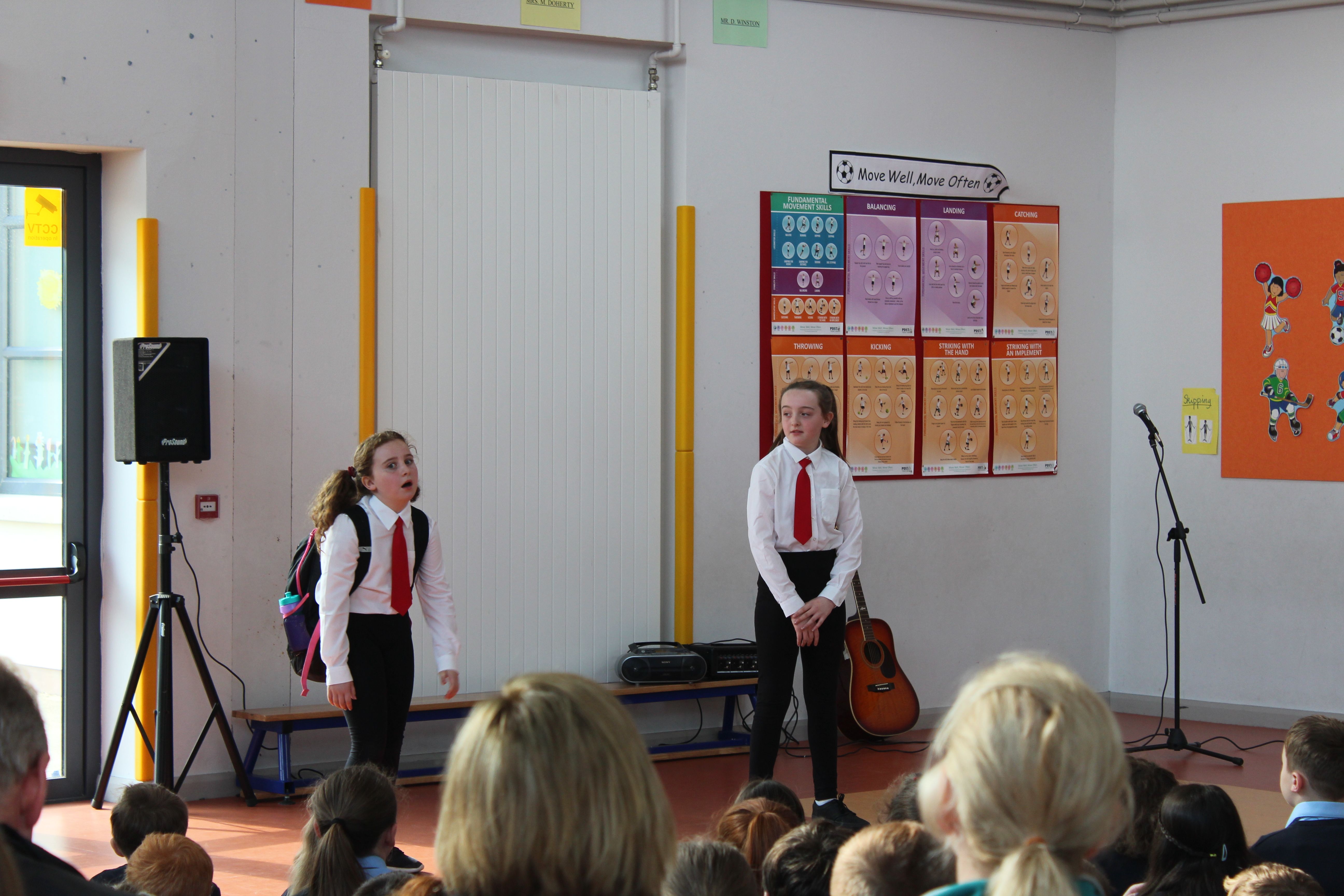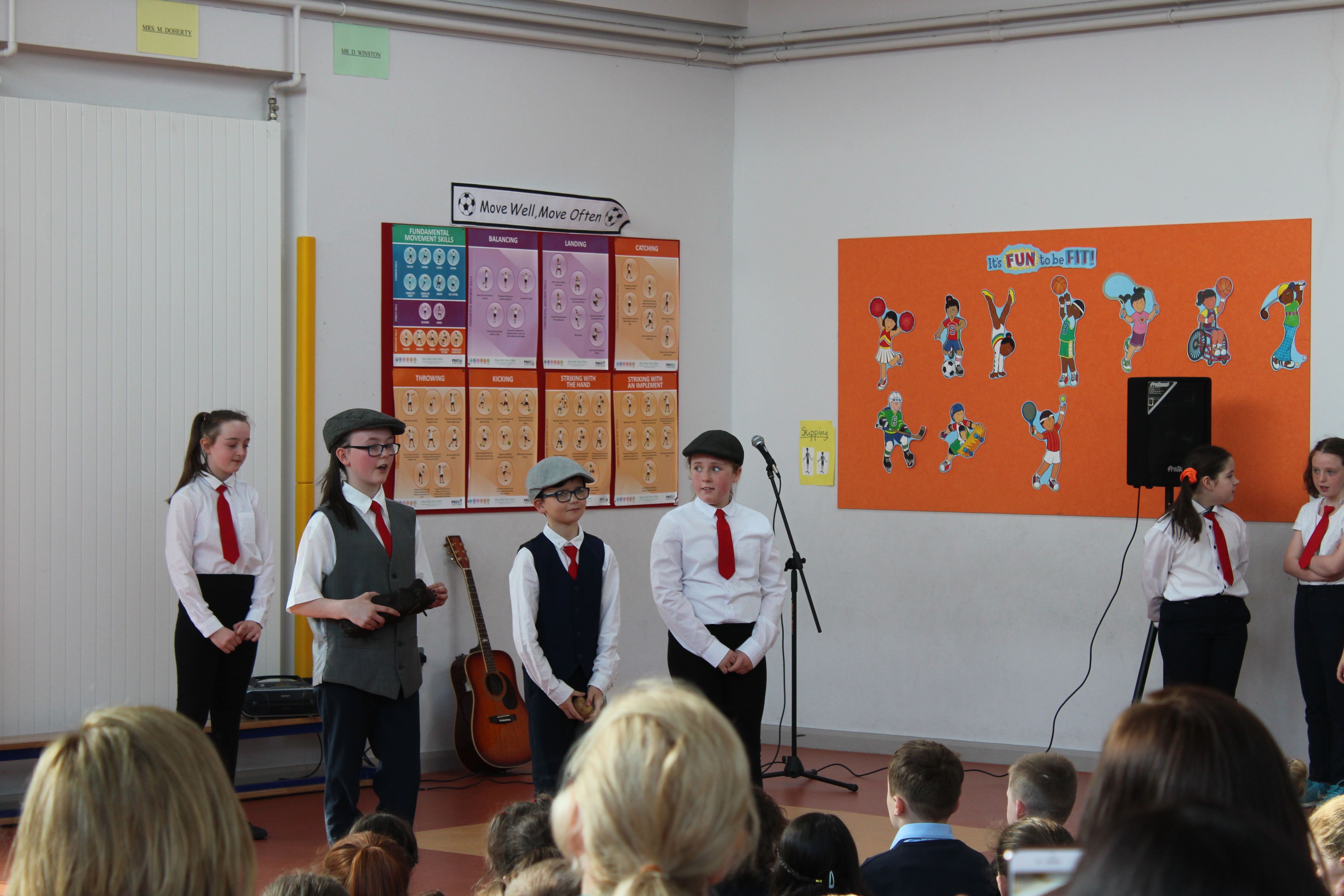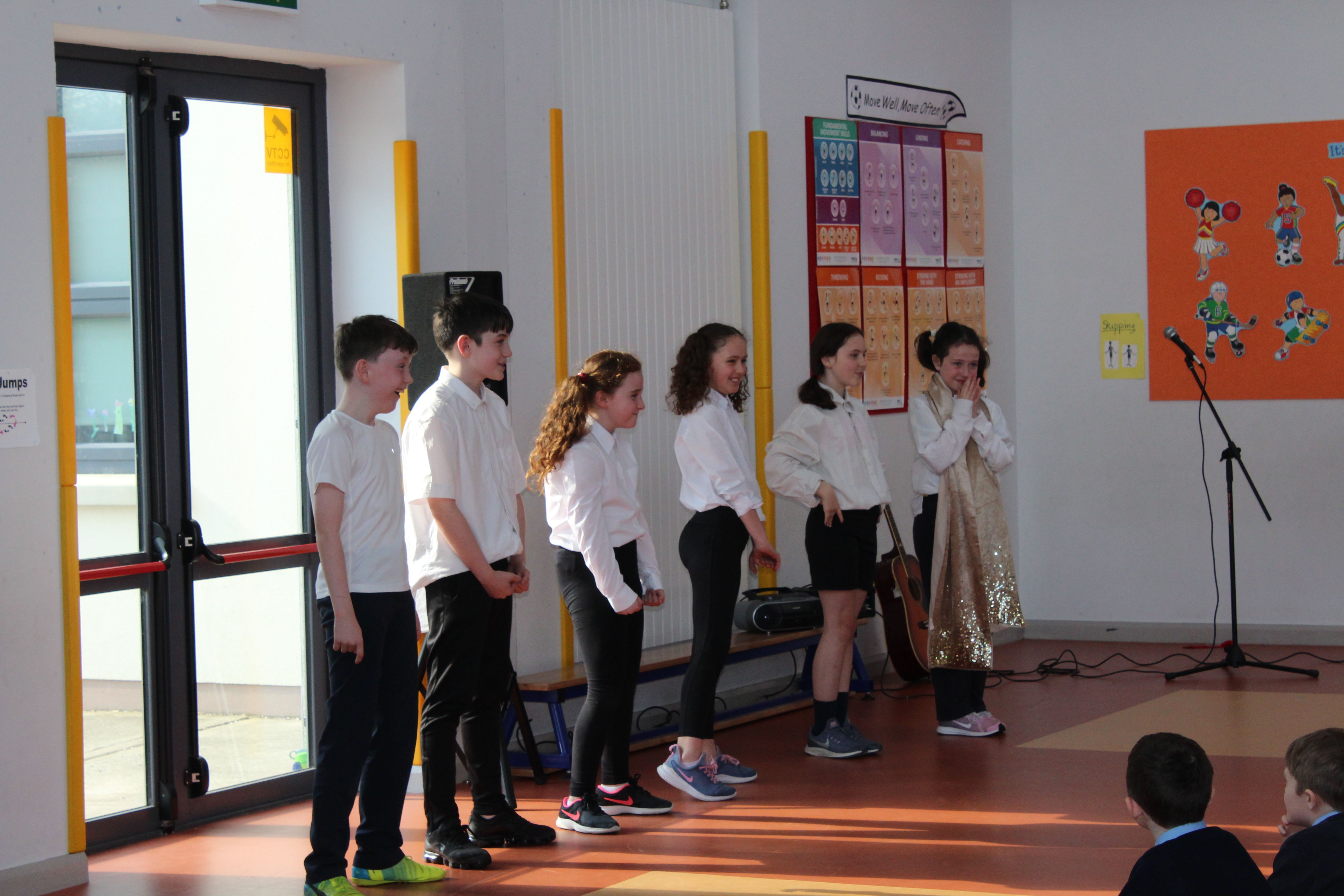 On Friday 5th April, the two fourth classes went to Colaiste Ailligh for Scór 2019.We went to represent our school St. Patrick’s N.S. All of us had a great time. Six categories were done; solo singing, group ballad singing, instrumental group, dramaíocht, solo dancing and storytelling. I was in the grúpa dramaíocht. Kacey Hegarty did solo dancing and Tara Gildea did the poem/storytelling. It was a big competition. All the schools were really good. The schools were; Scoil Mhuire Gán Smál, Scoil Cholmcille, Gaelscoil, Glassan N.S and Stramore N.S. The overall winners of the competition were Scoil Mhuire Gán Smál. We came second in the dramaíocht and got a medal. It was a wonderful opportunity to be included in such an amazing competition. By Erin Hughes, 4th class