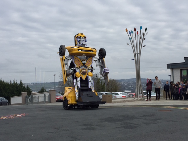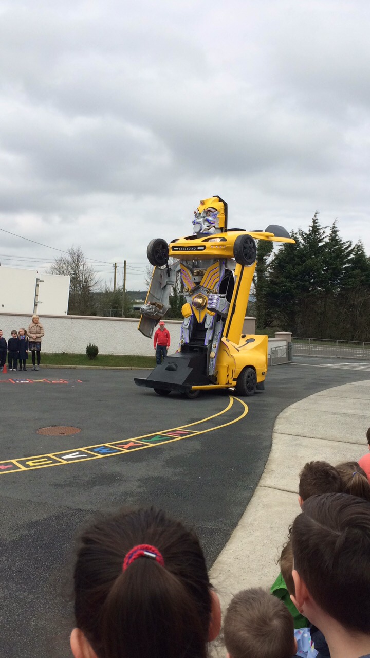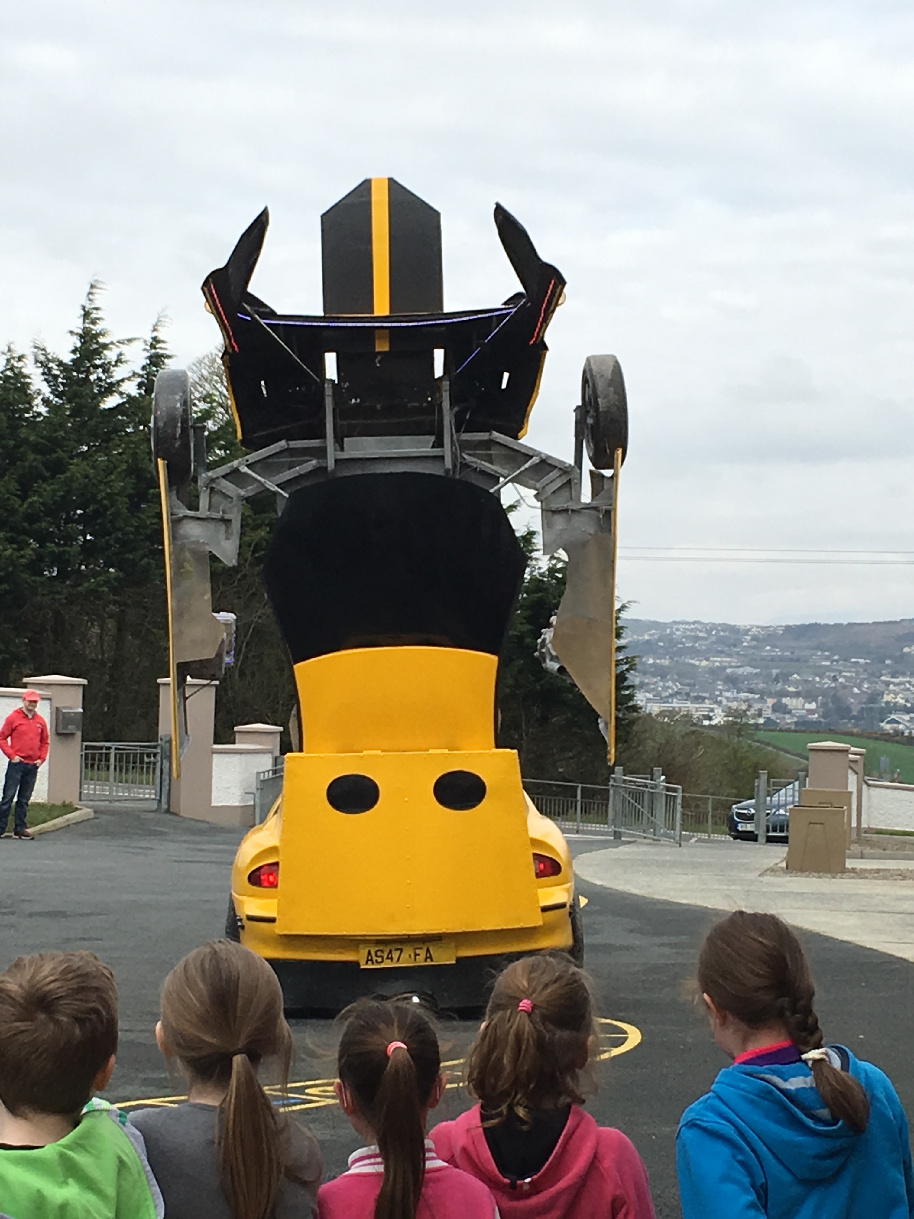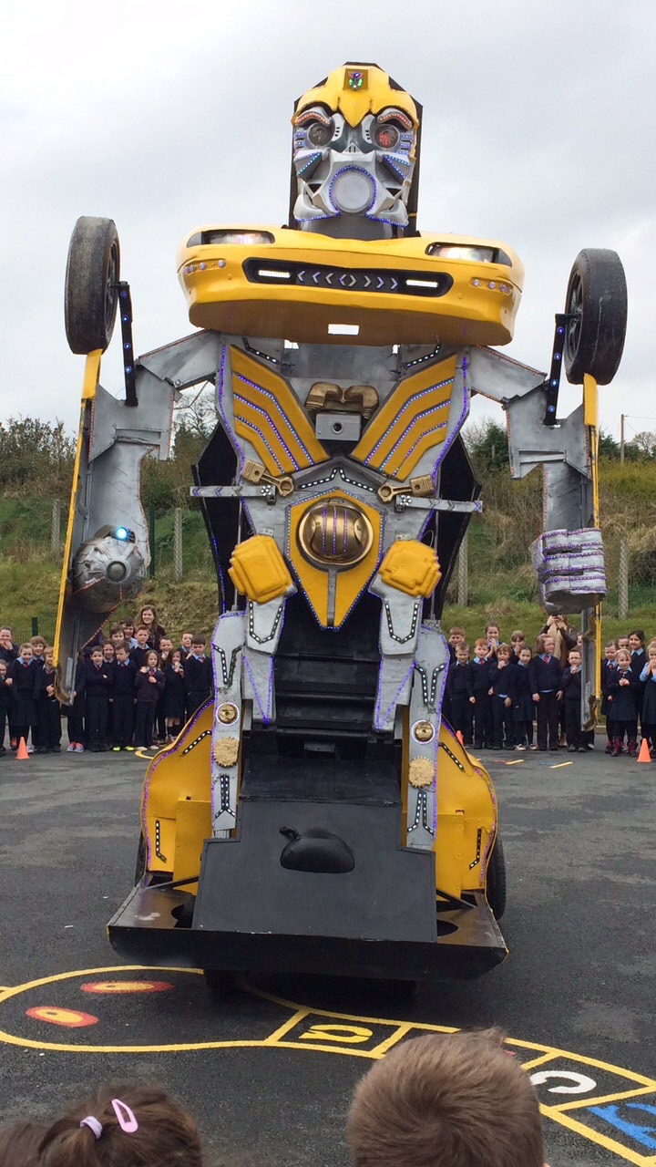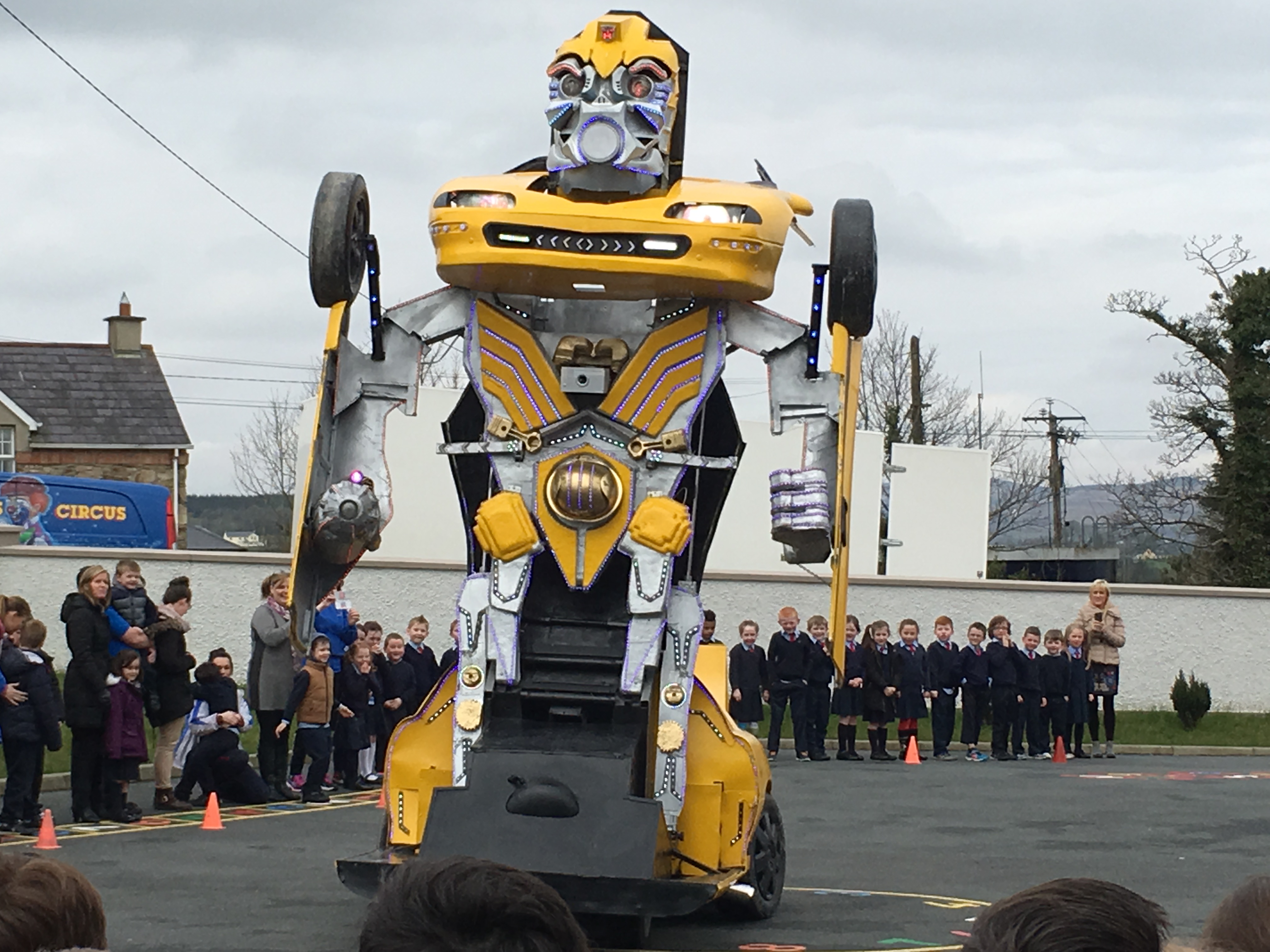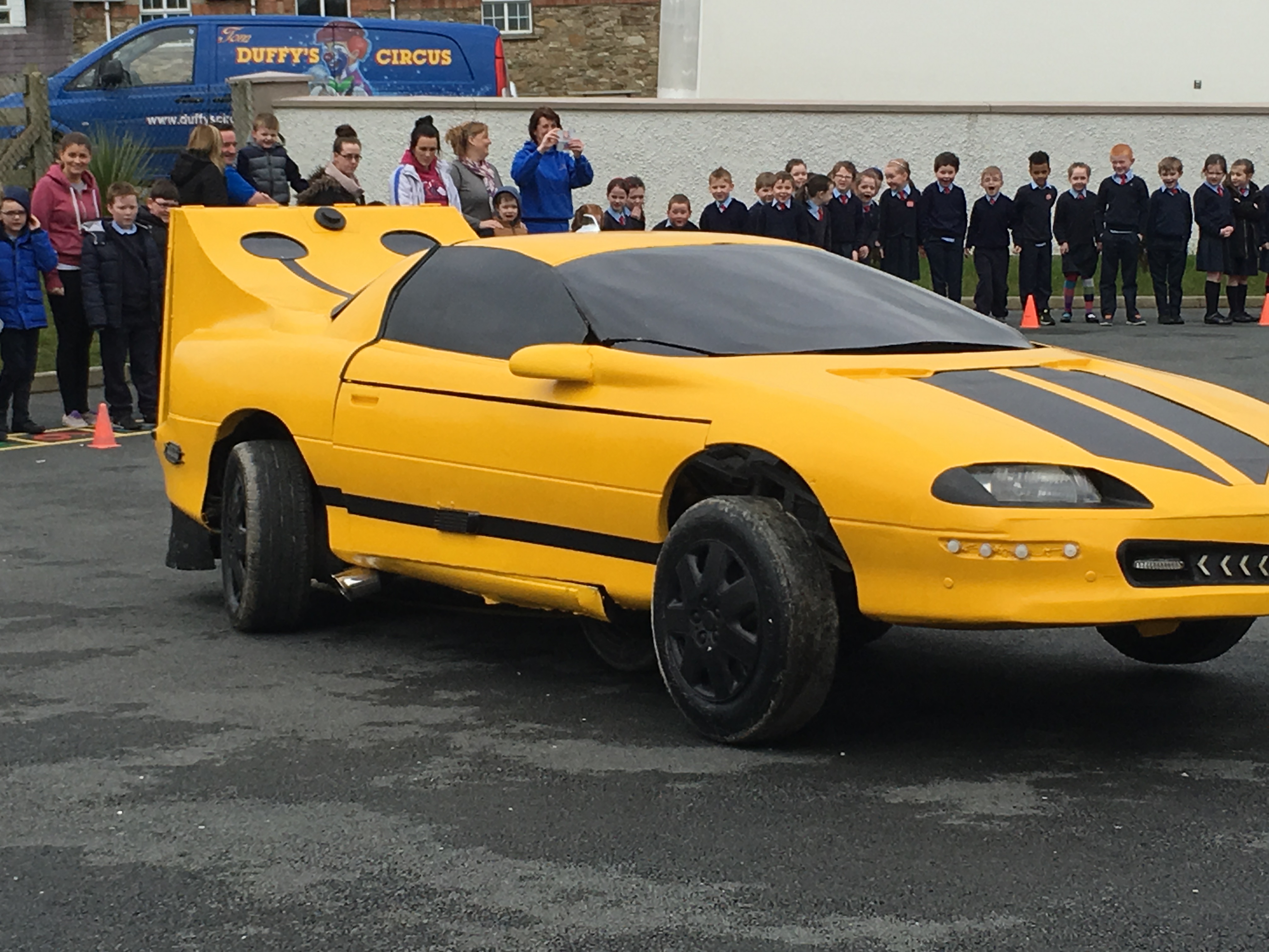 Pupils were left open-mouthed when the amazing transformer car from Tom Duffy’s Circus arrived.