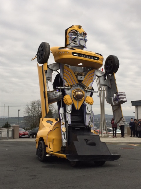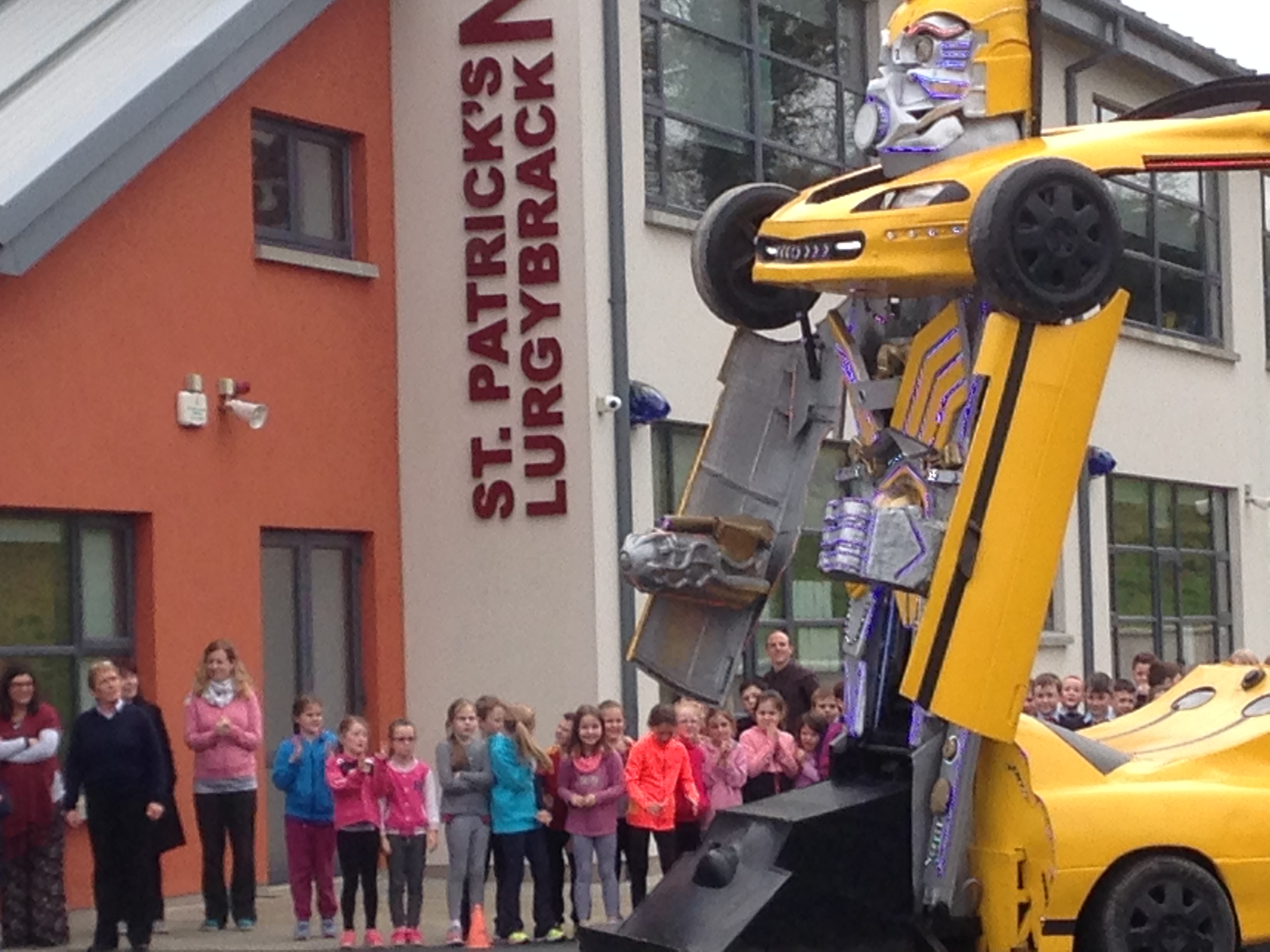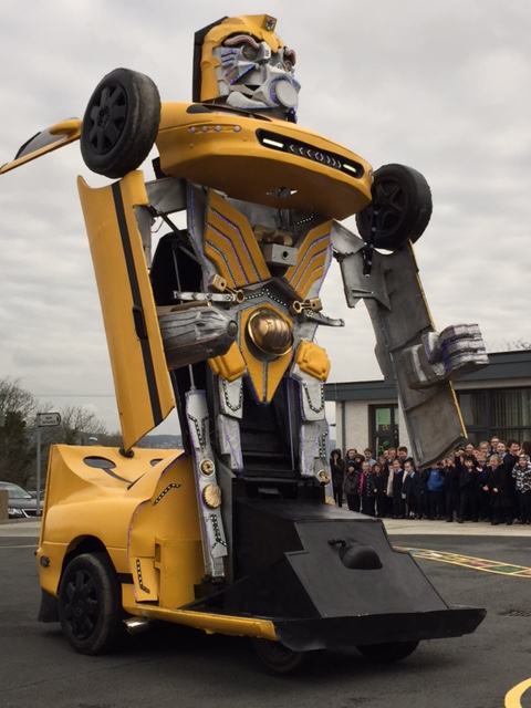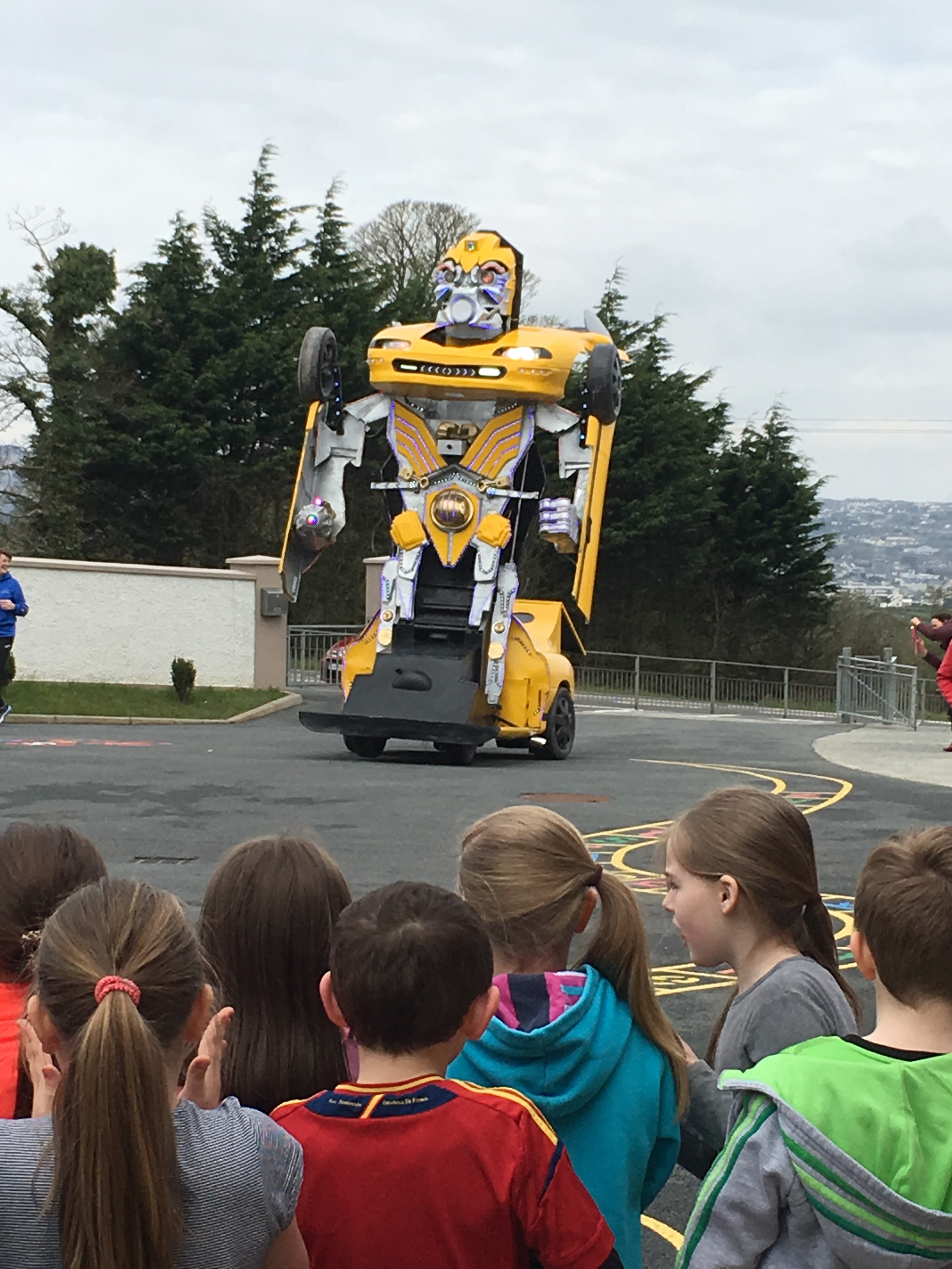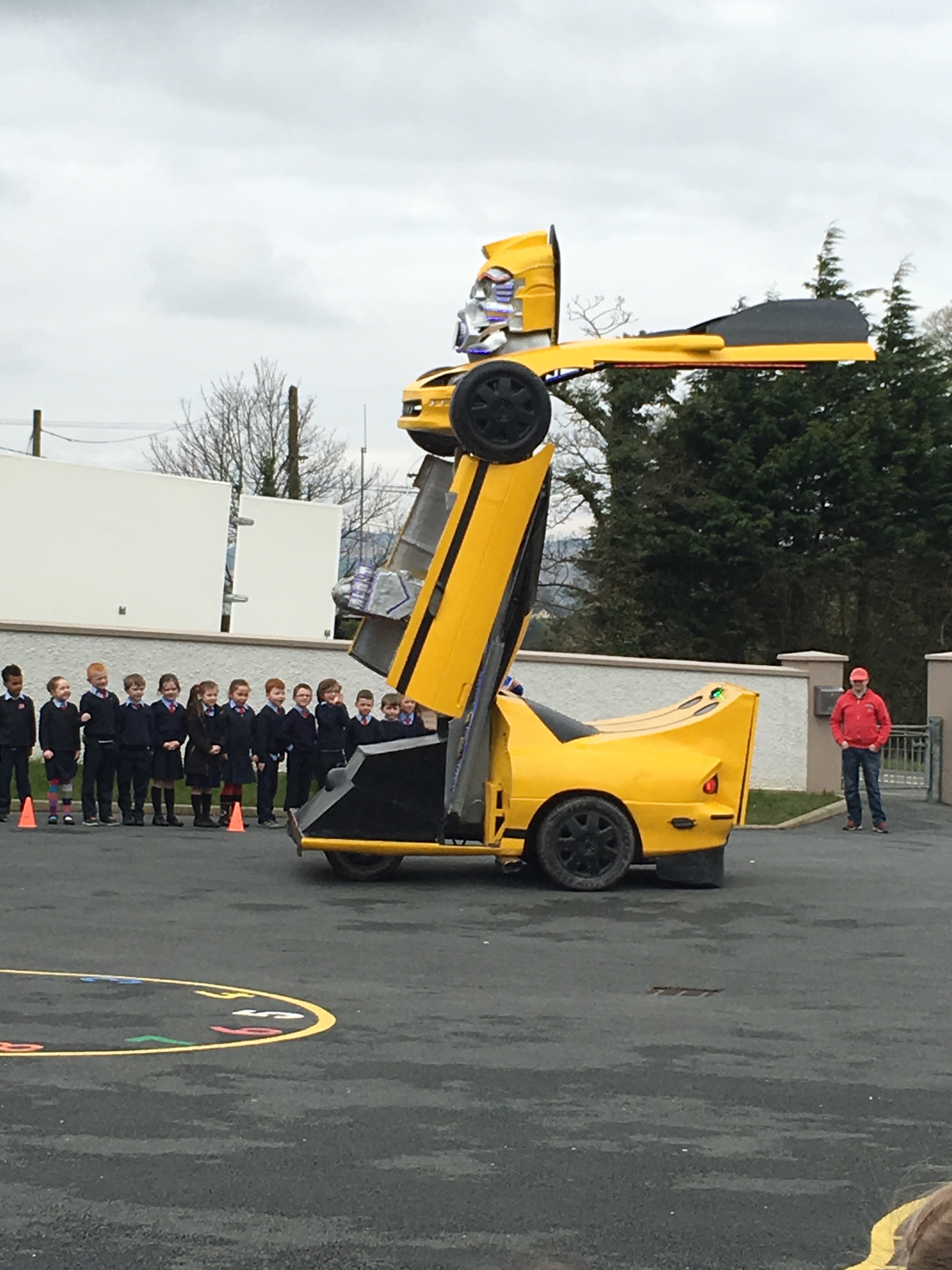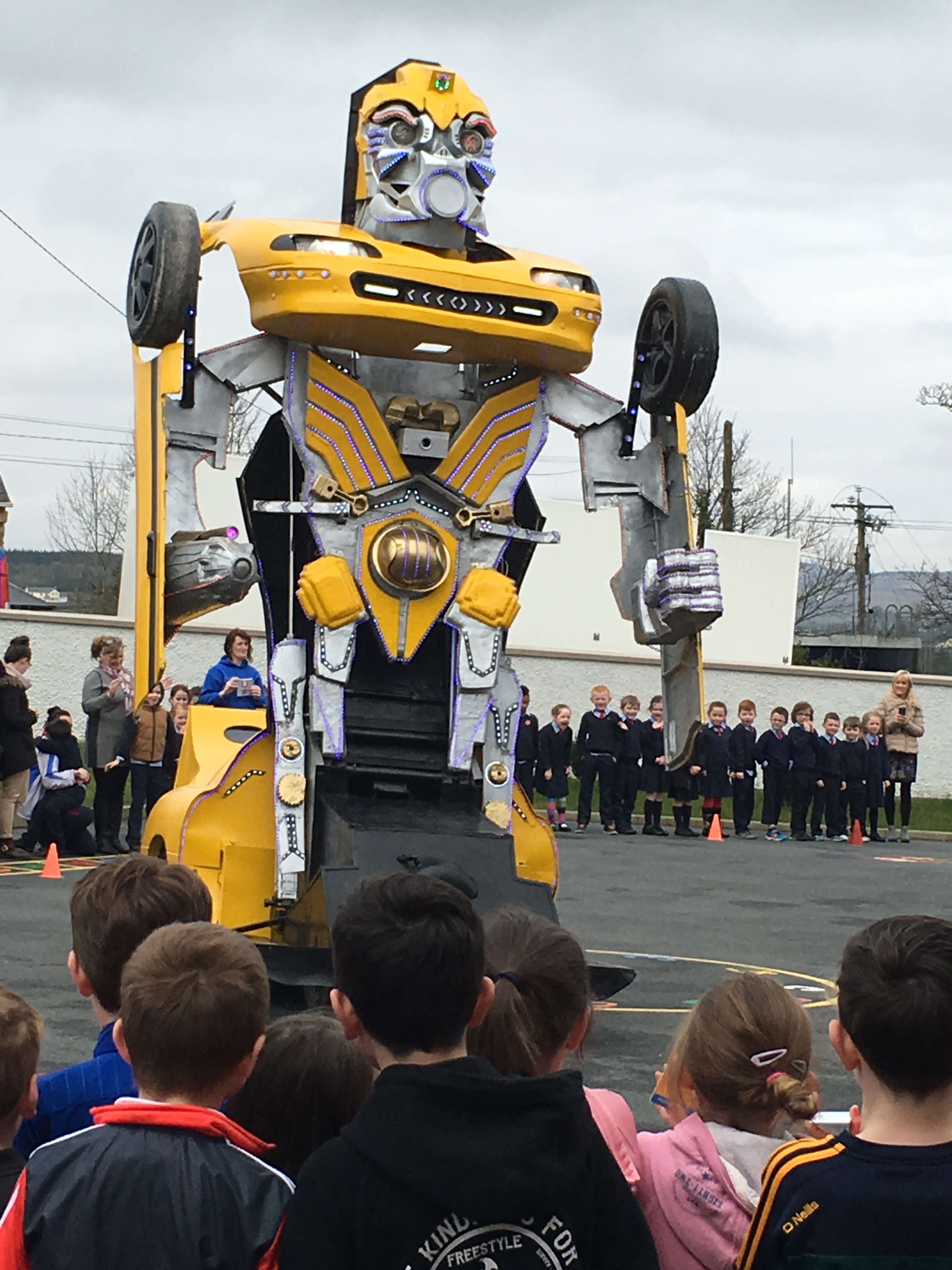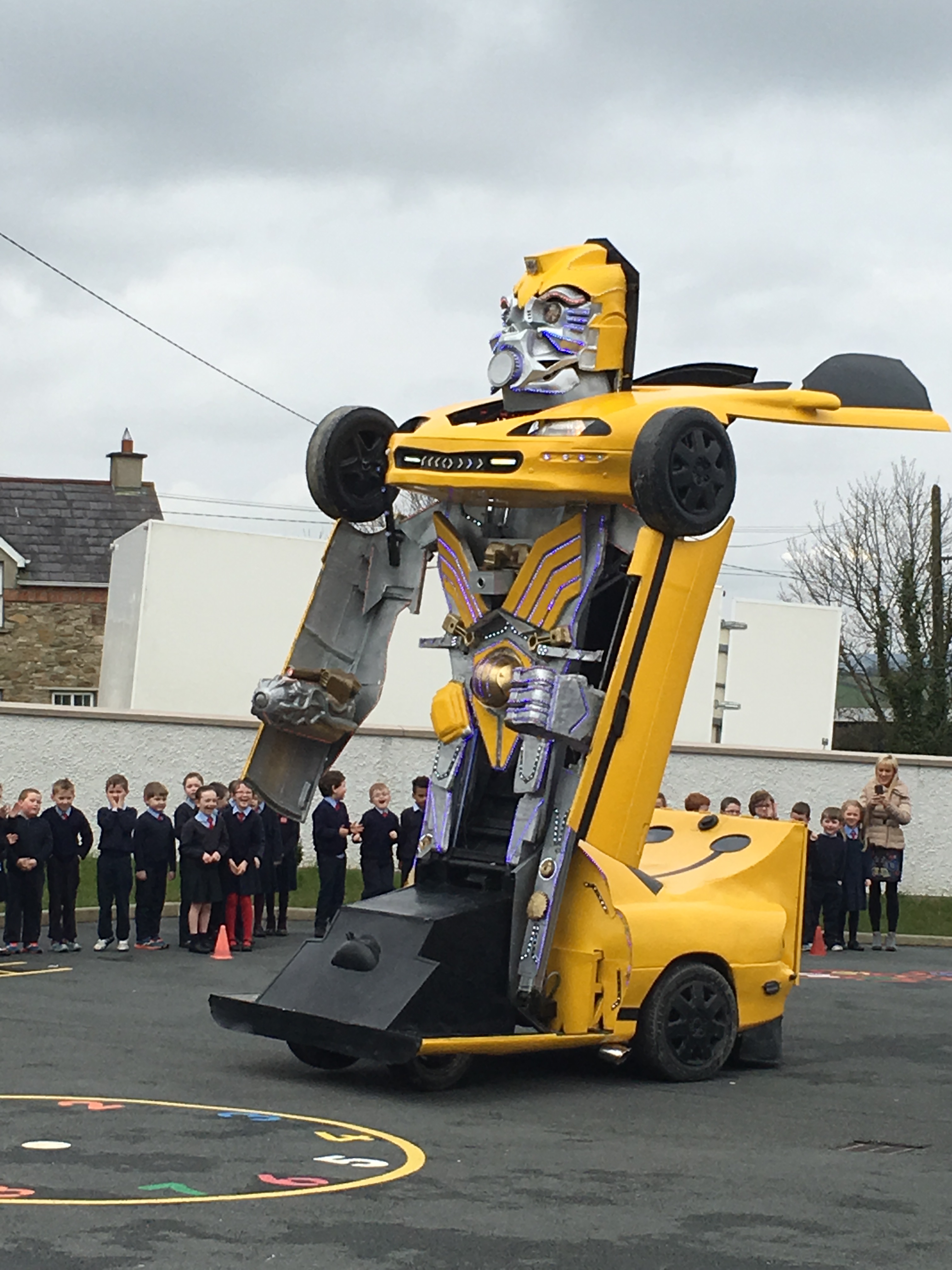 Pupils were left open-mouthed when the amazing transformer car from Tom Duffy’s Circus arrived.