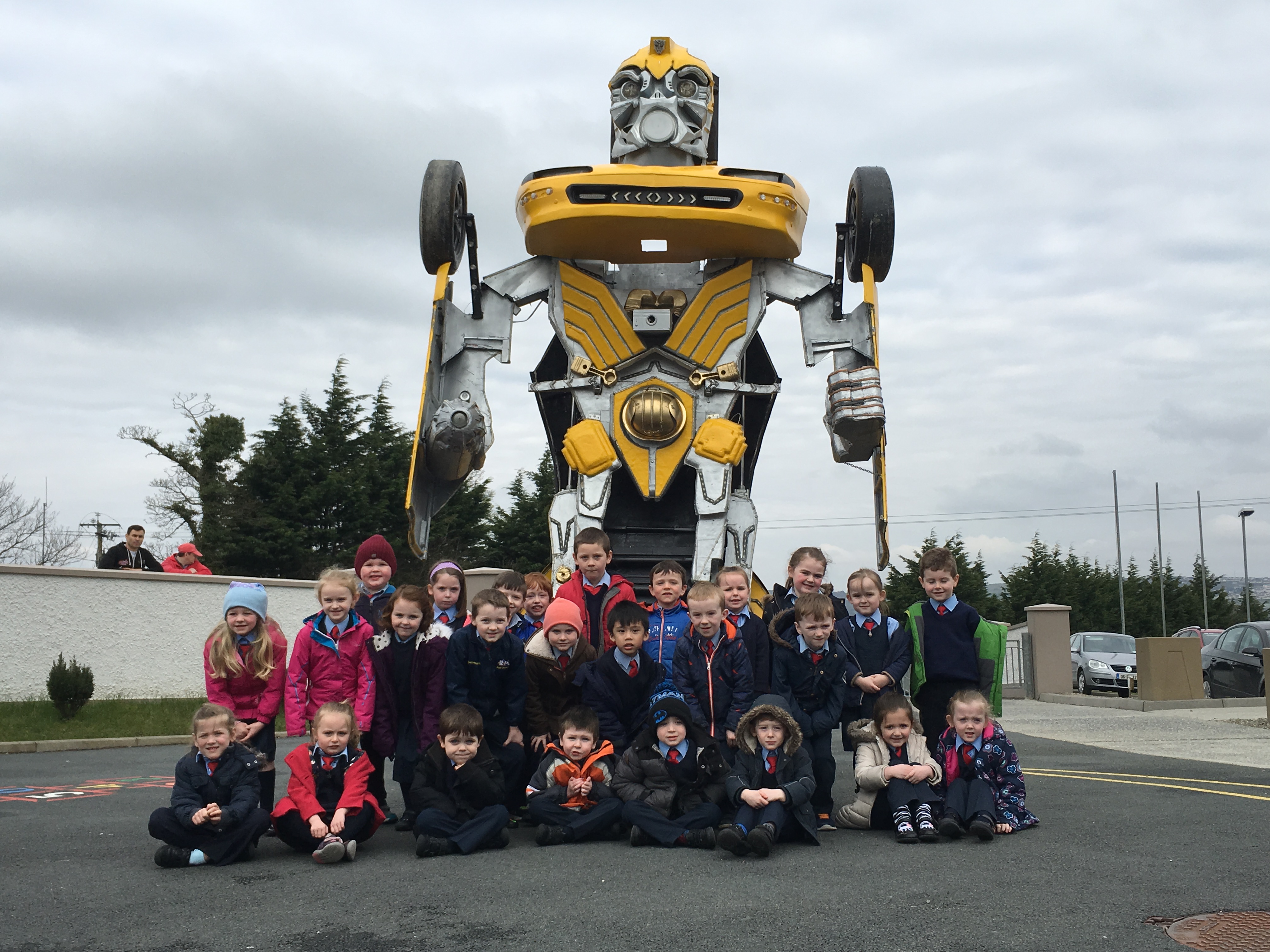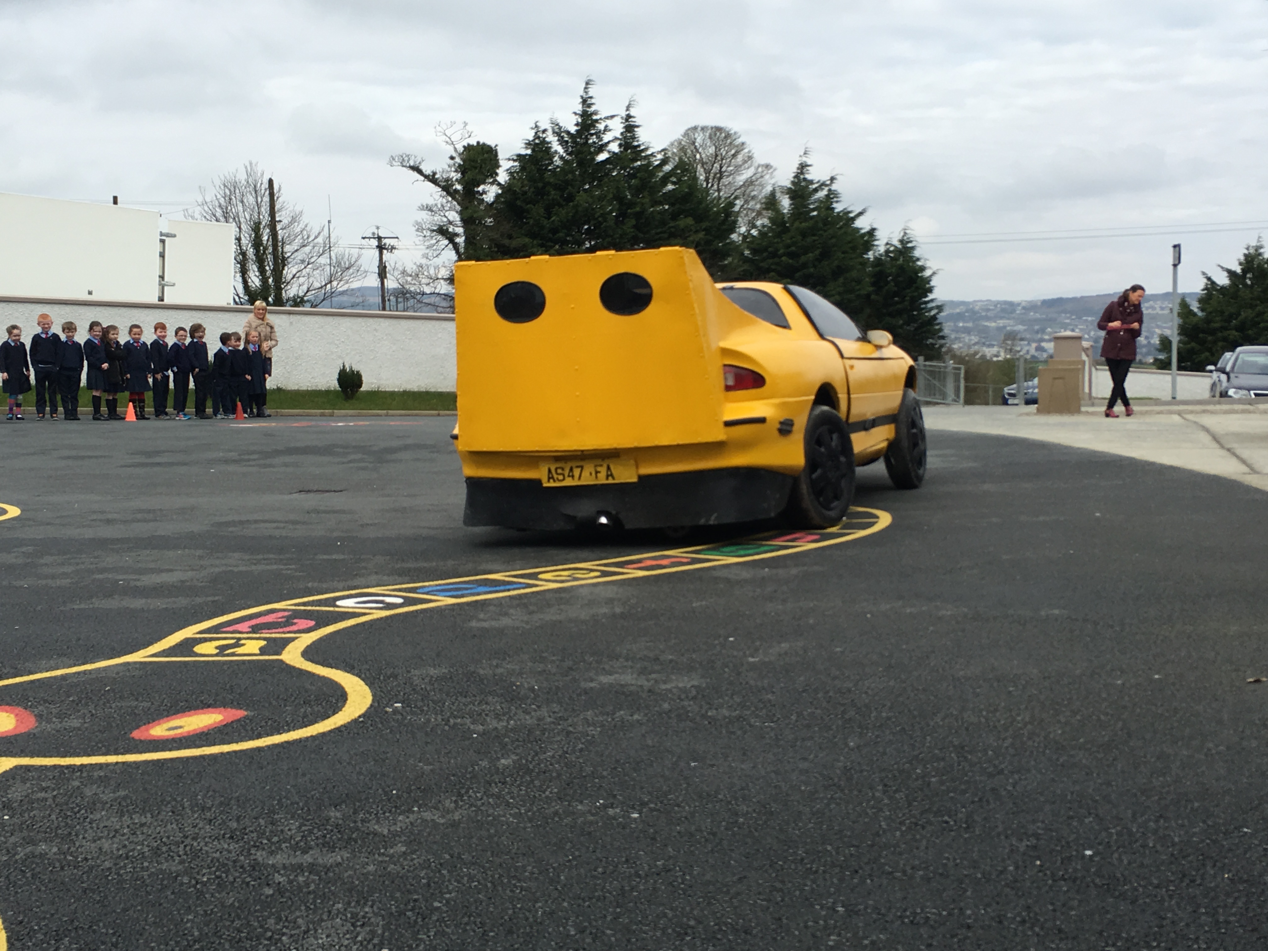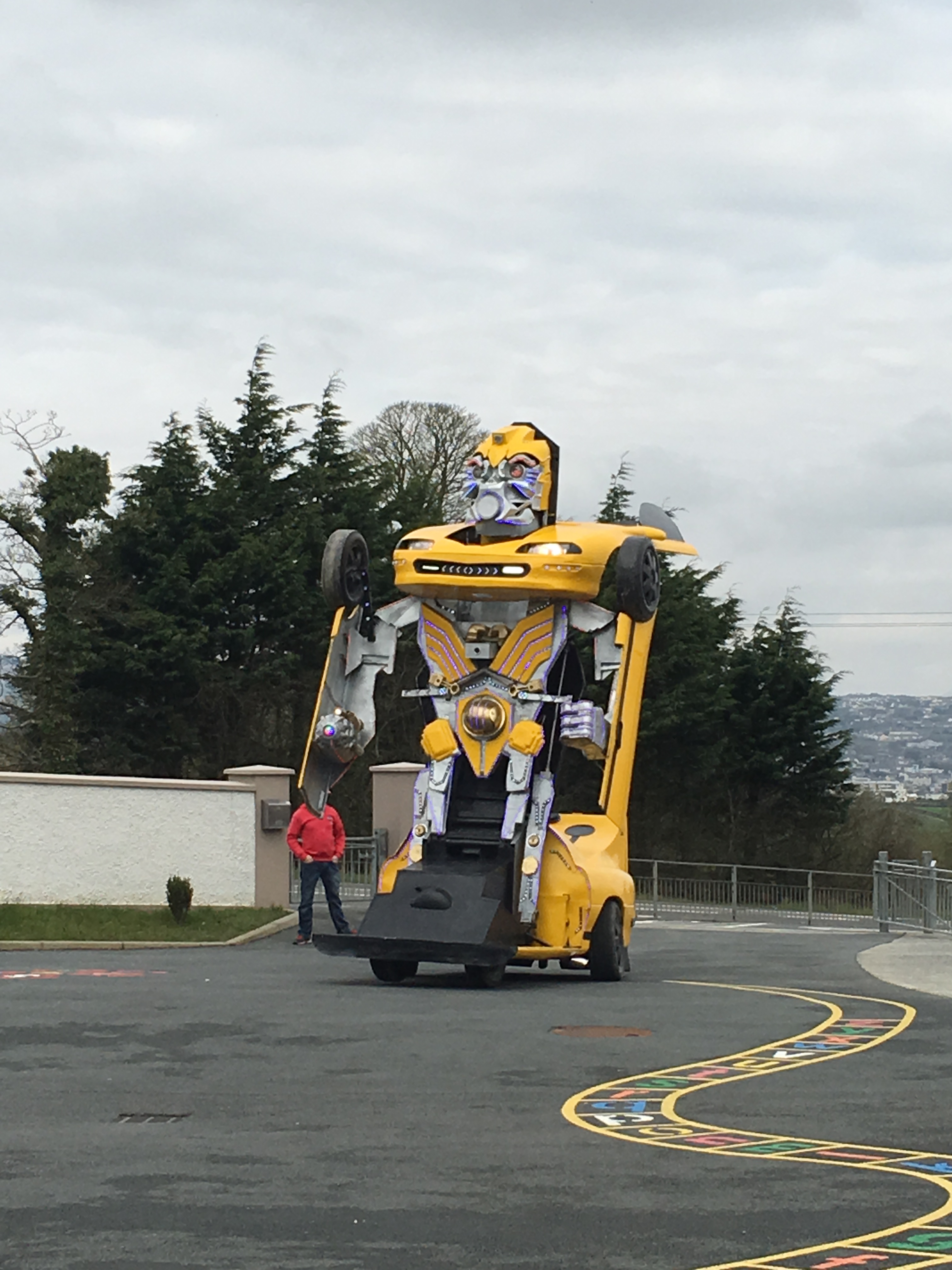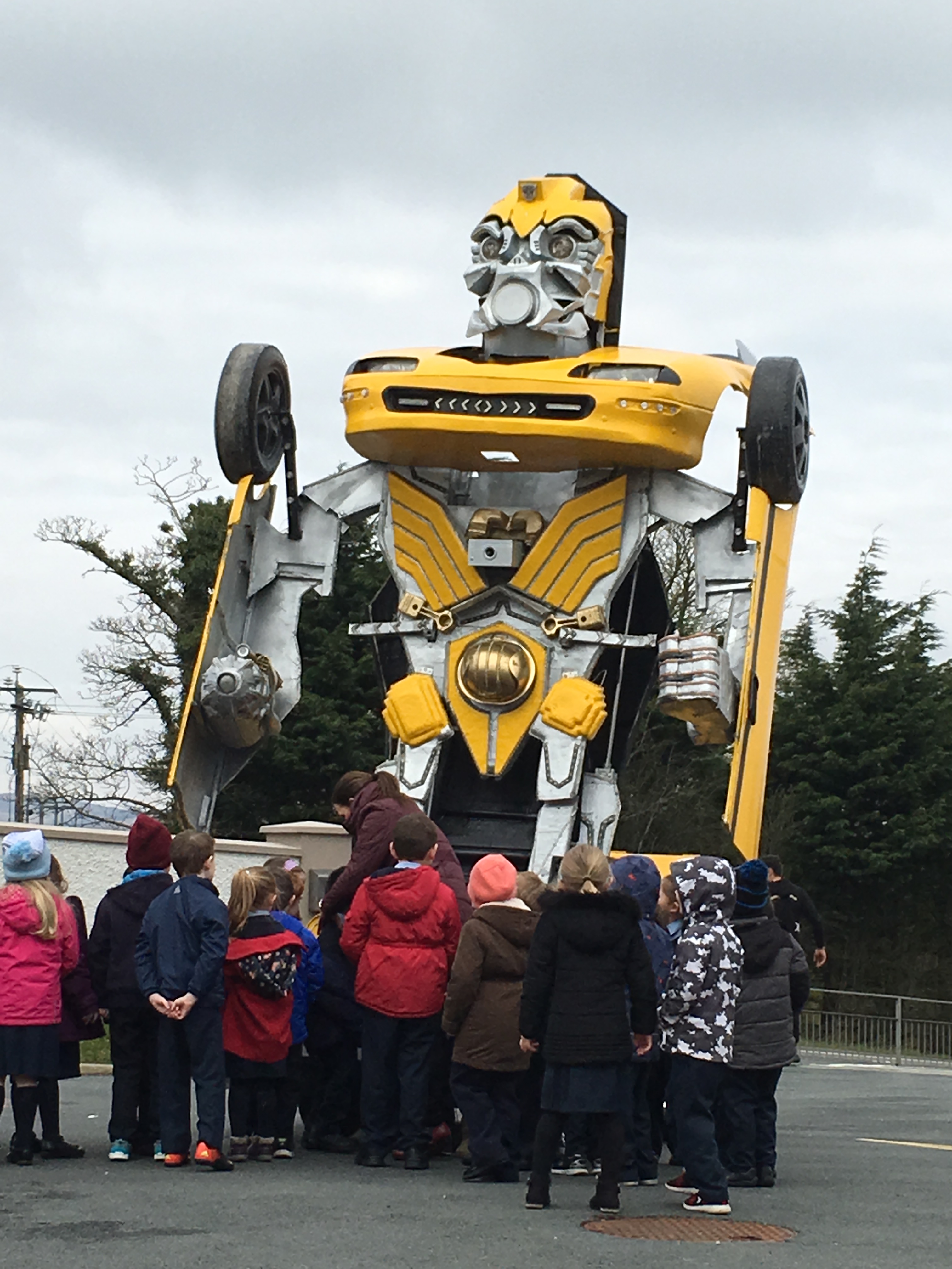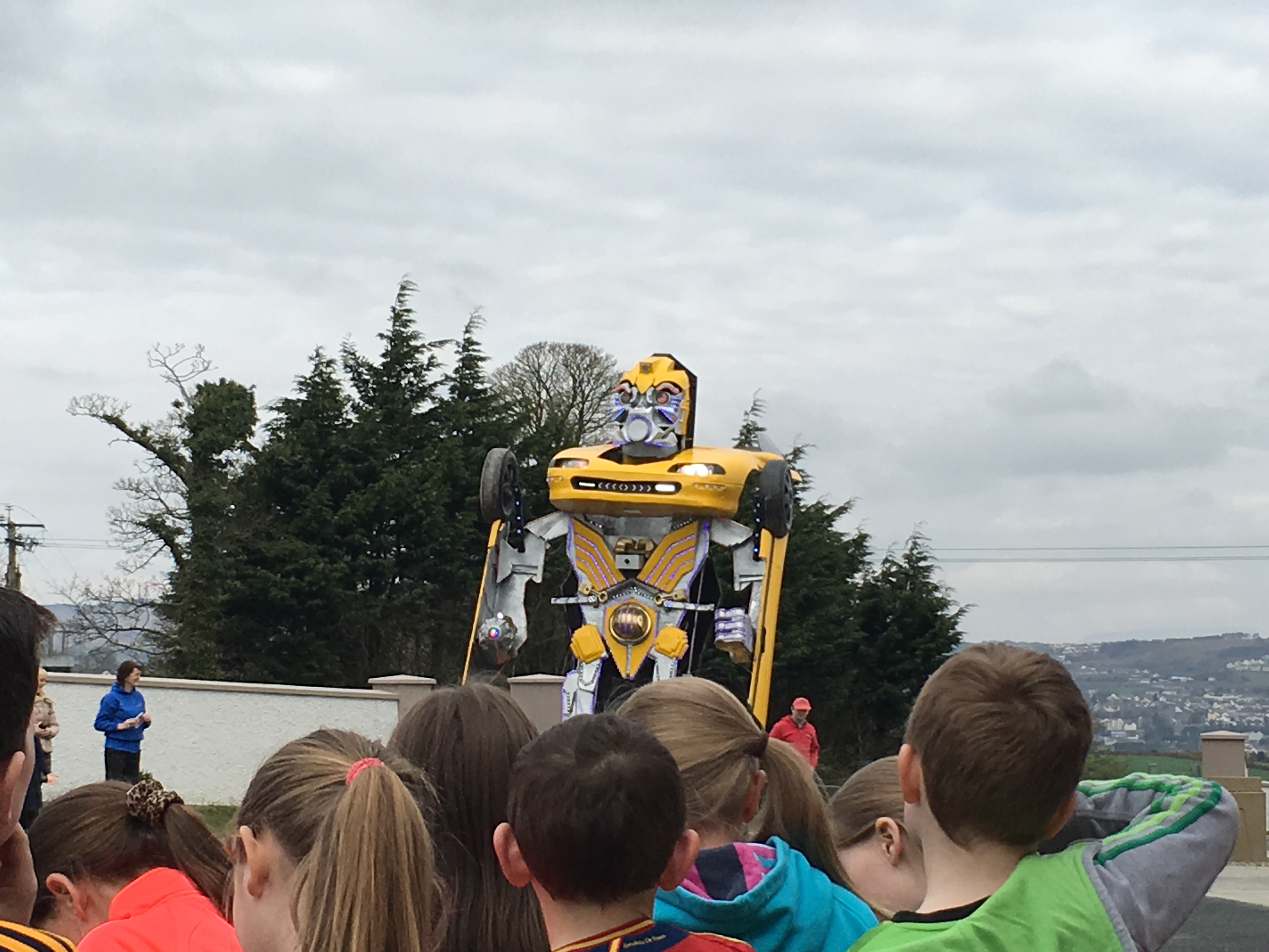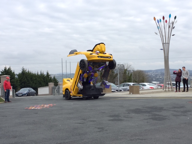 Pupils were left open-mouthed when the amazing transformer car from Tom Duffy’s Circus arrived.
