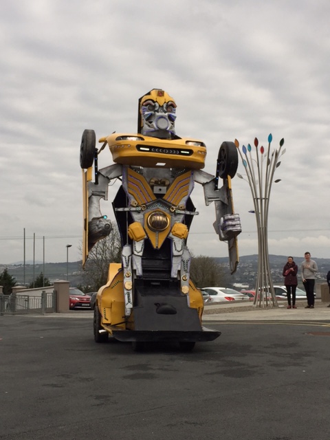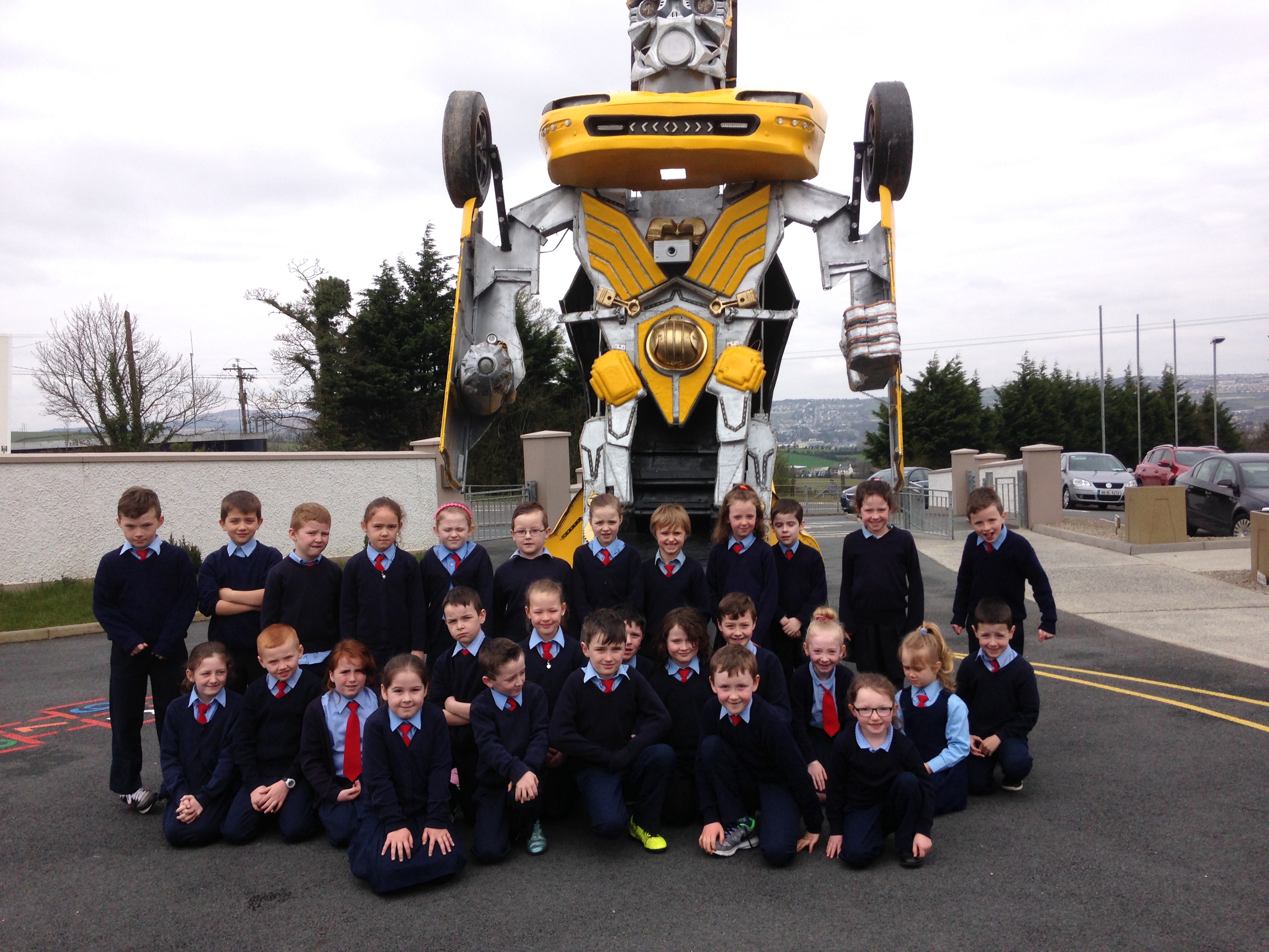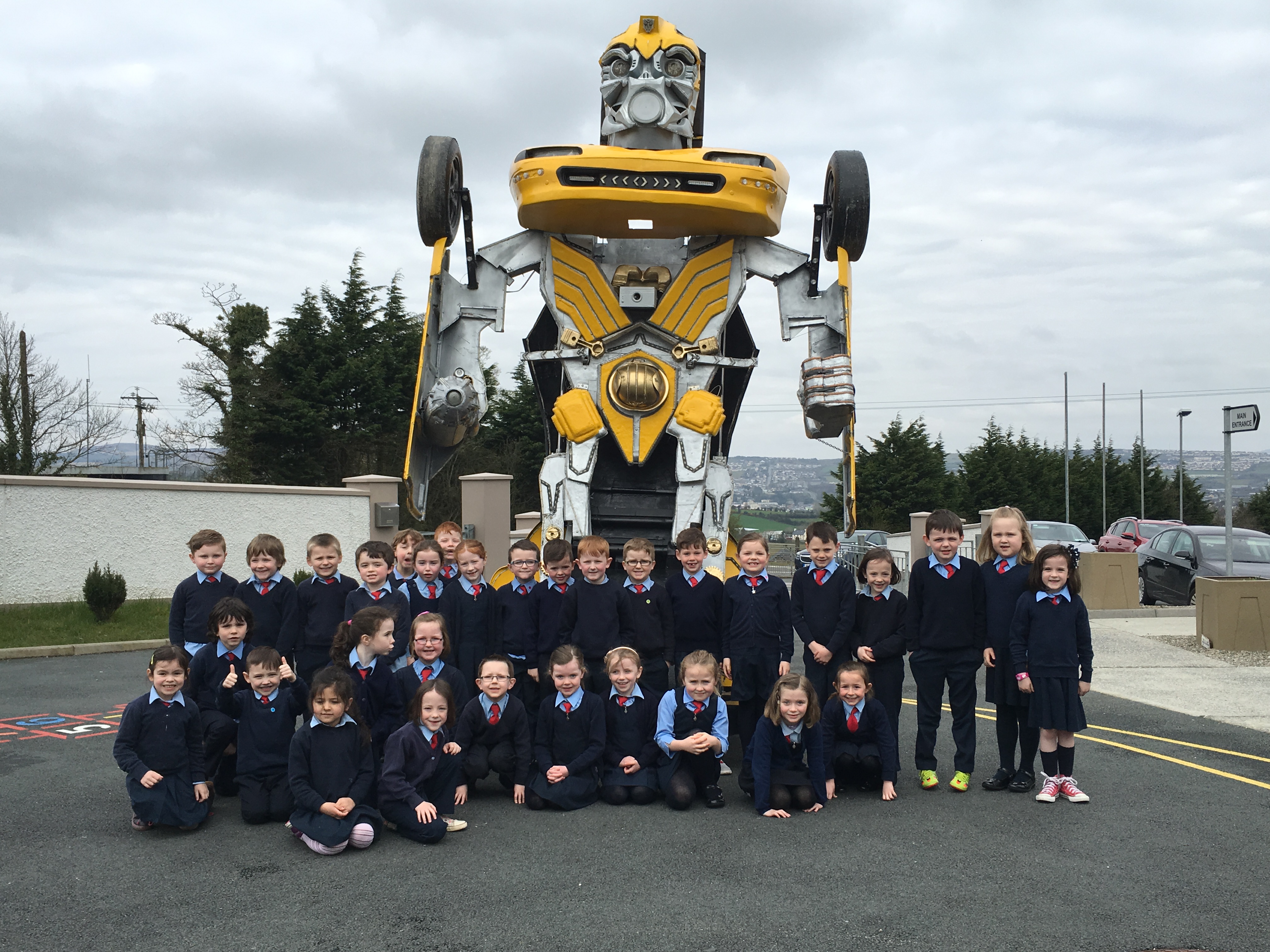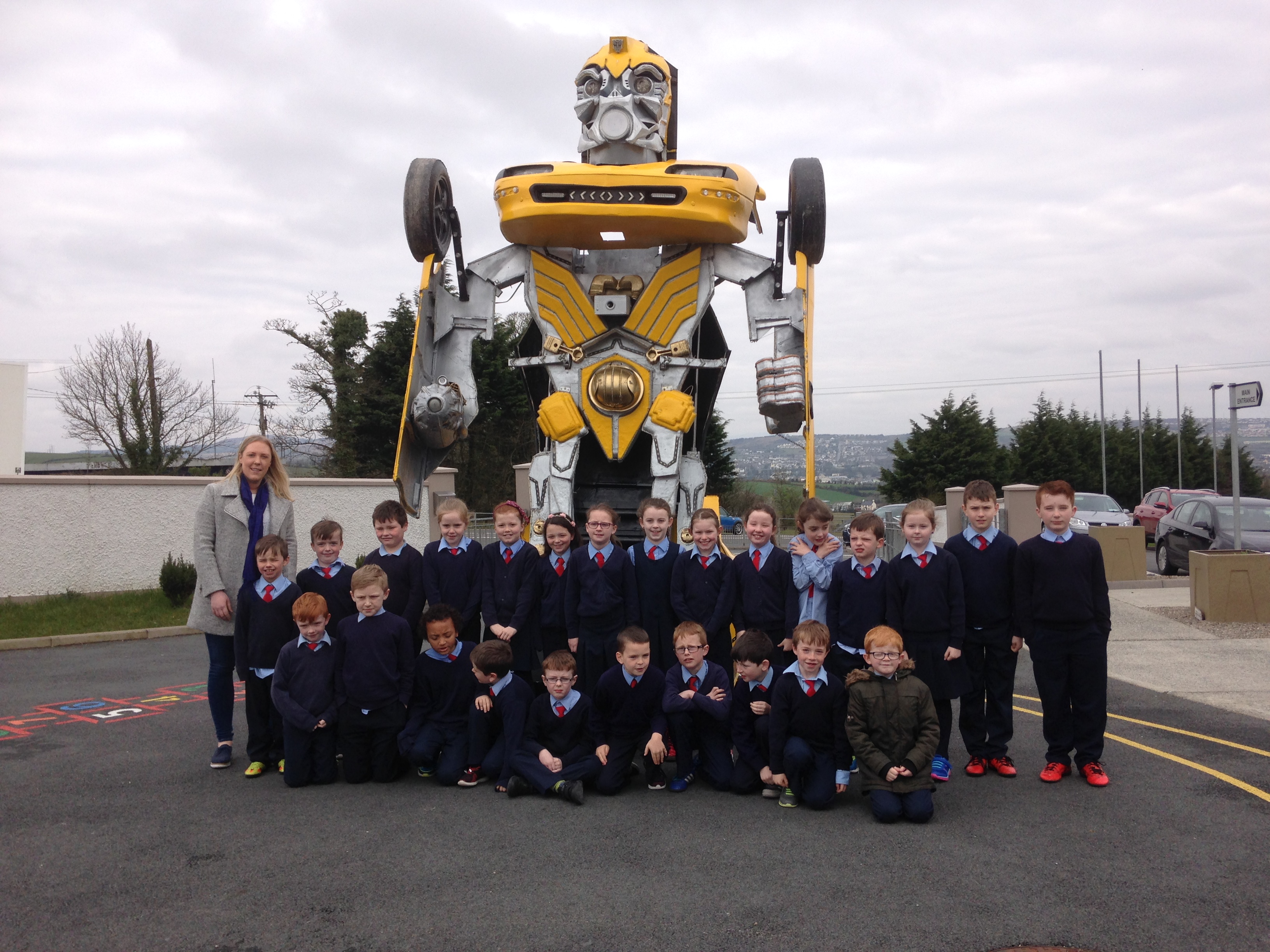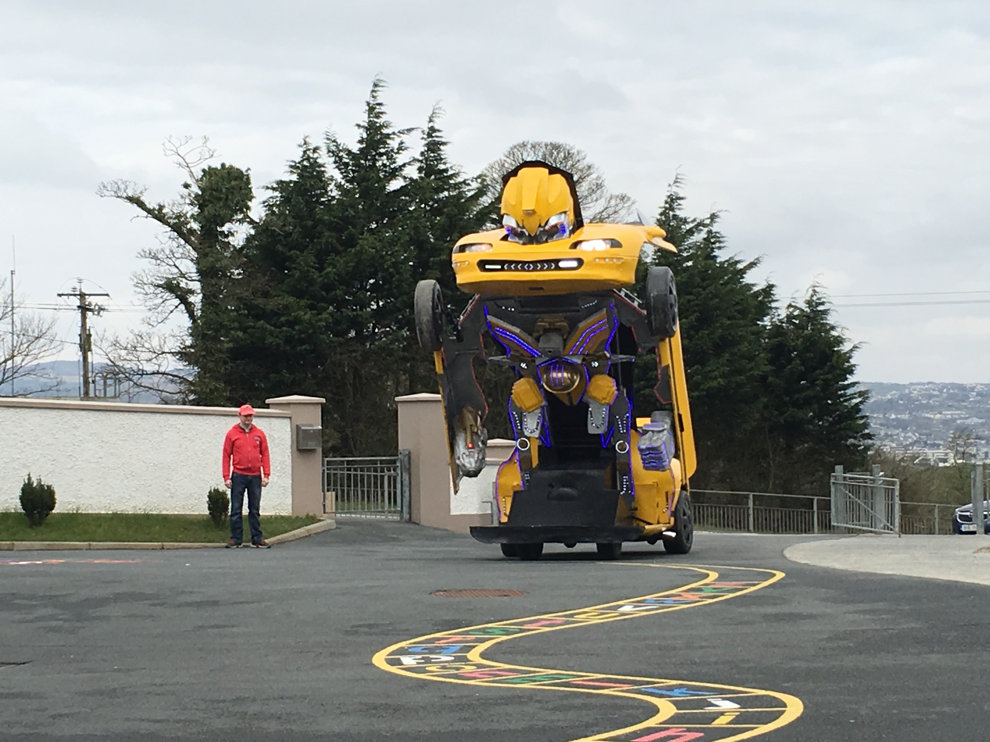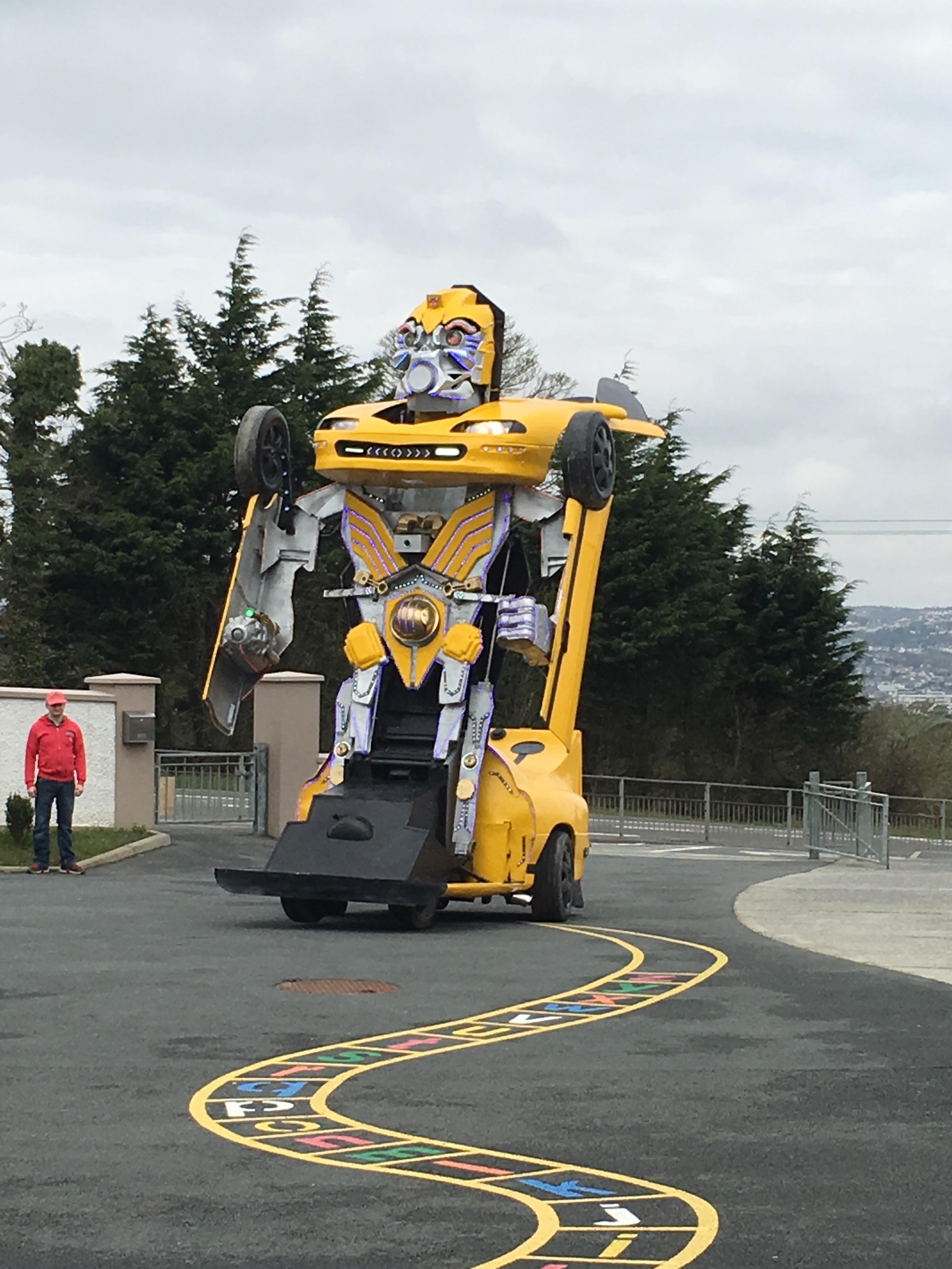 Pupils were left open-mouthed when the amazing transformer car from Tom Duffy’s Circus arrived.