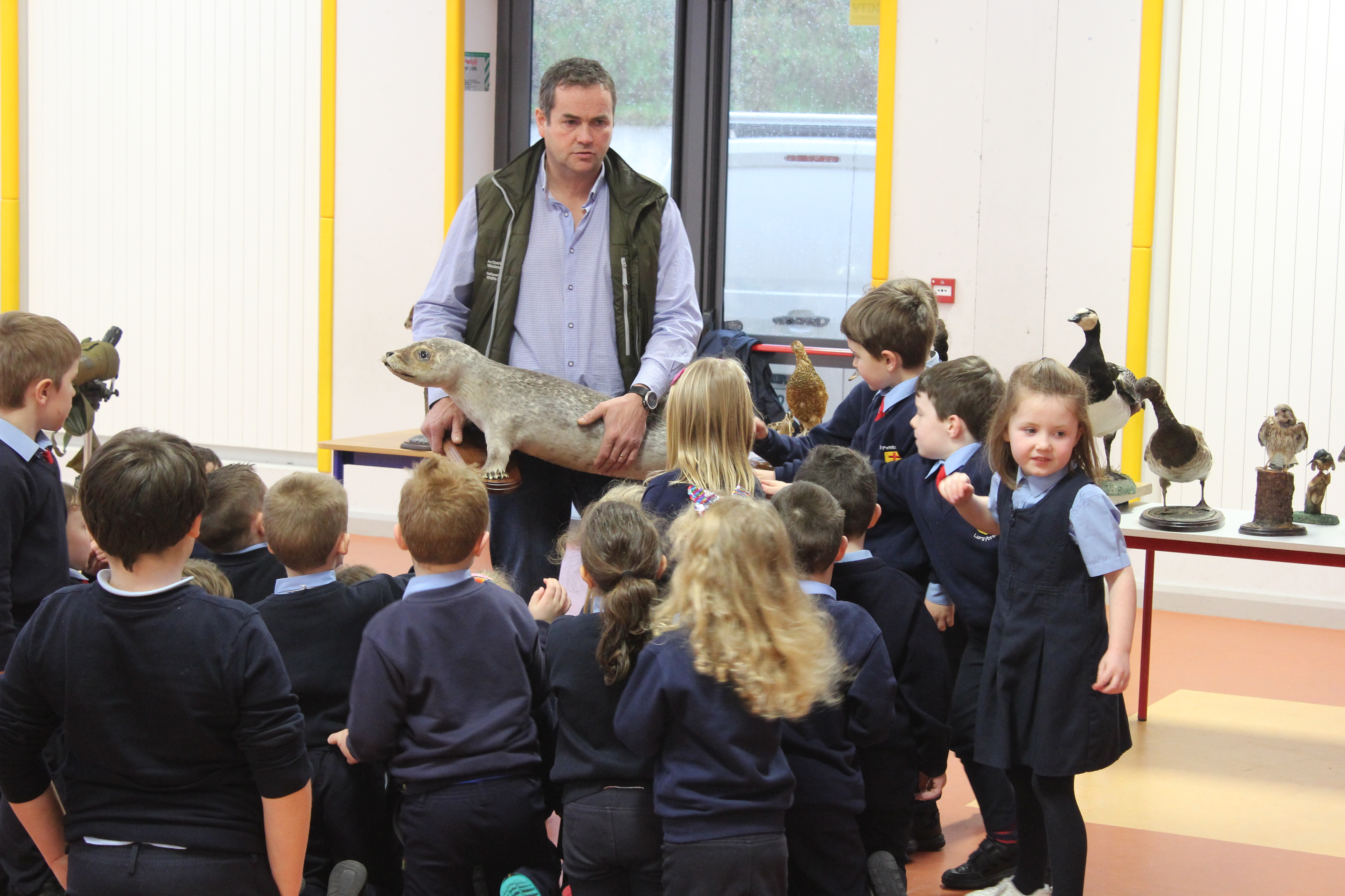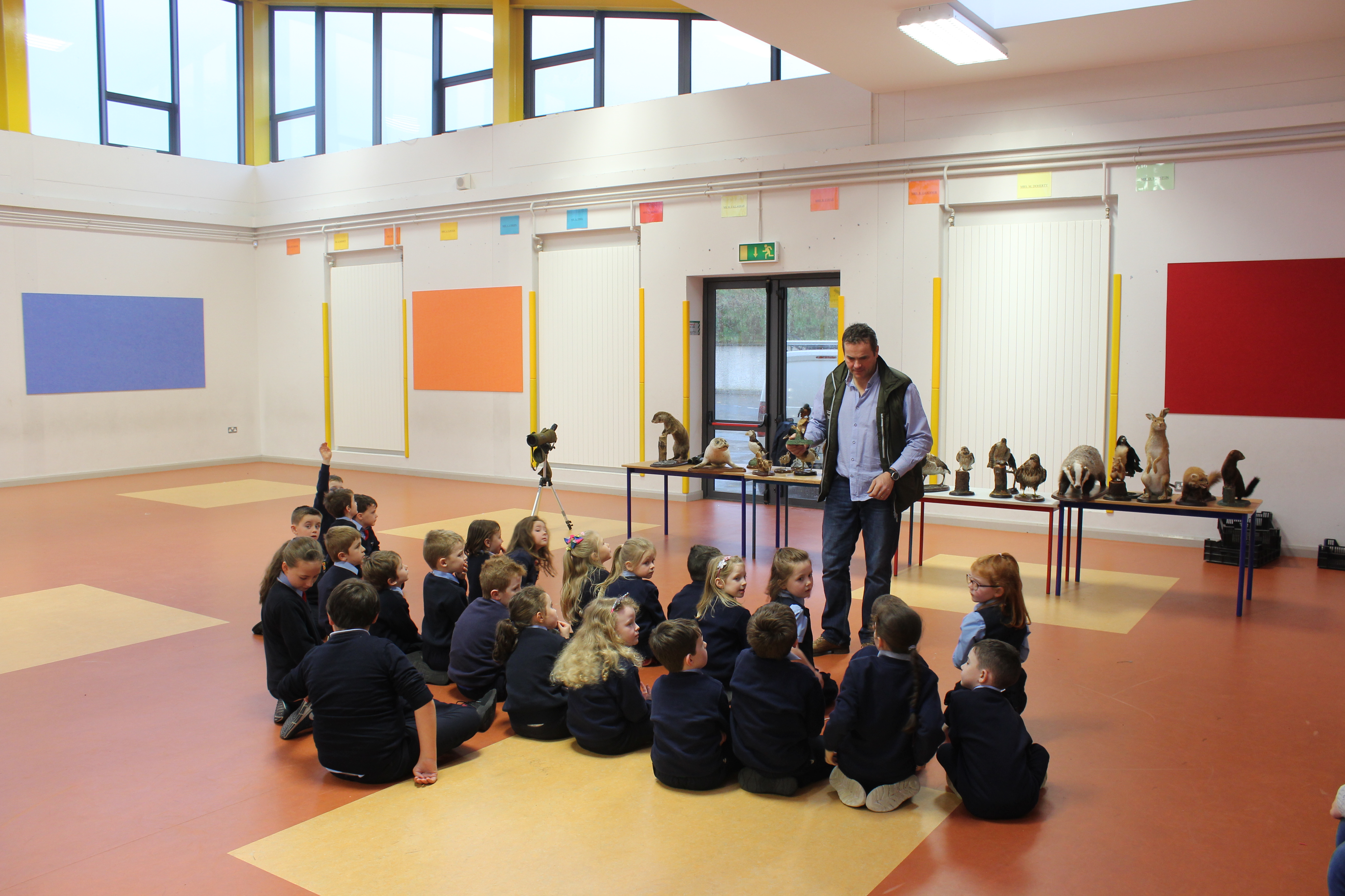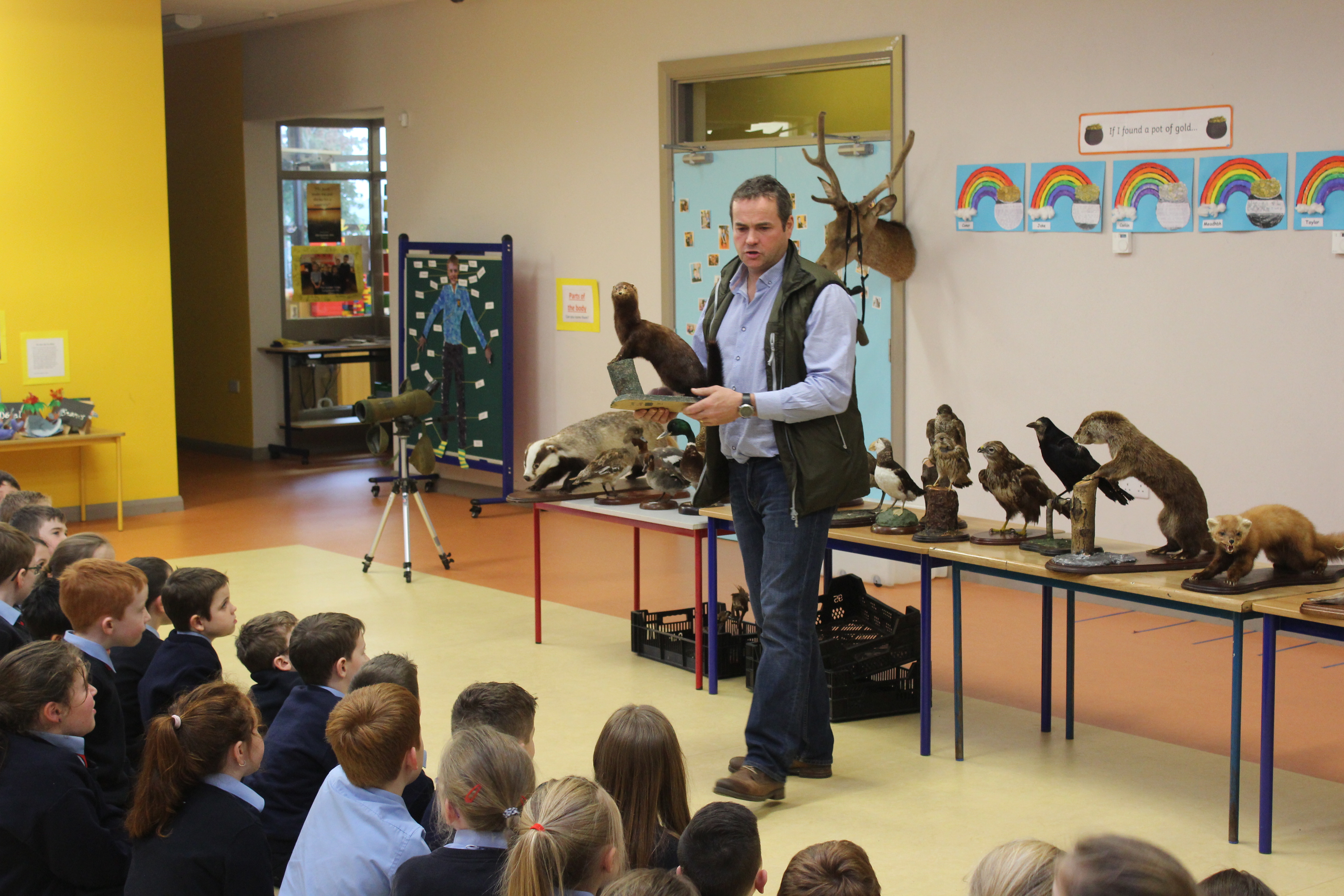 Karl Byrne, wildlife officer from Glenveagh, gave a talk and demonstration to the children. He had many native stuffed animals to show them. It was very interesting and the children got to touch a number of the animals. Thanks to Karl and Glenveagh.